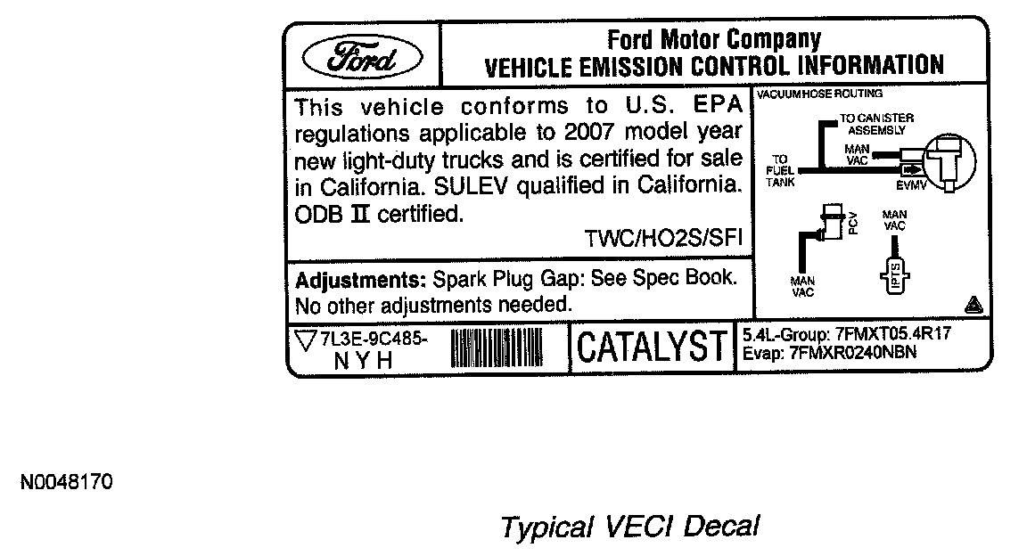 Each vehicle has a VECI decal containing emission control information that applies specifically to the vehicle and engine. The specifications on the decal are critical to repairing the emissions systems.