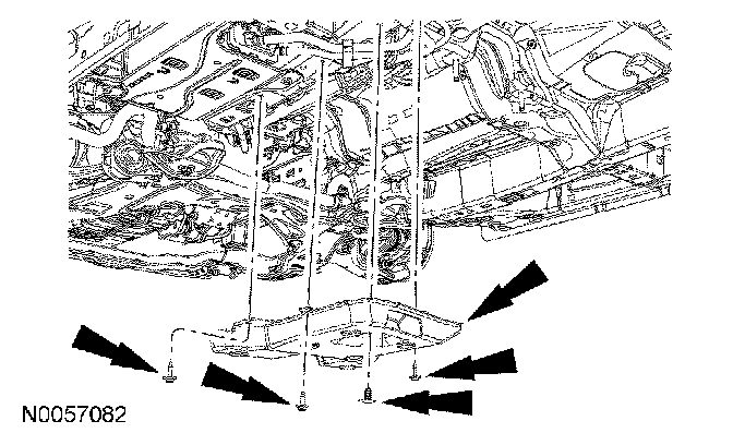 2. Remove the 3 bolts, pushpin retainer and the evaporative emission (EVAP) shield.