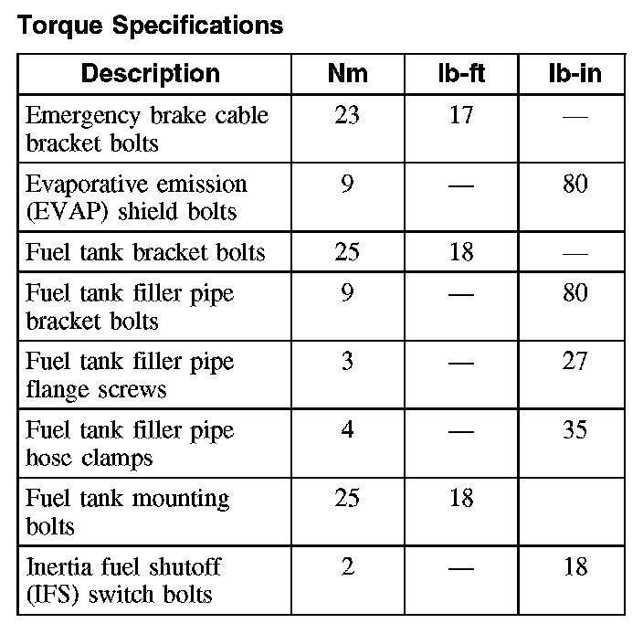 Torque Specifications: