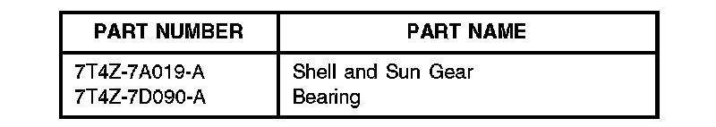 2. Replace the intermediate shell/sun gear assembly and the number 3 bearing next to the sun gear with revised parts following WSM, Section 307-03.