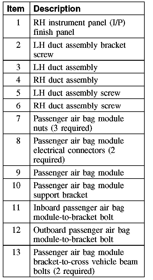 PASSENGER AIR BAG MODULEPart 1: