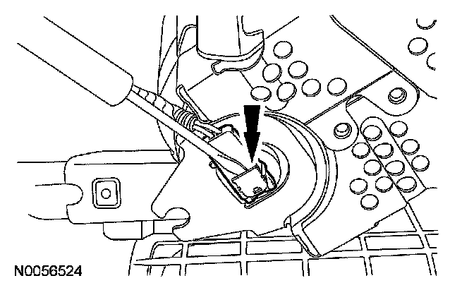 13. CAUTION: Do not pull the passenger air bag module electrical connector out by the locking button. Damage to the locking button may occur.