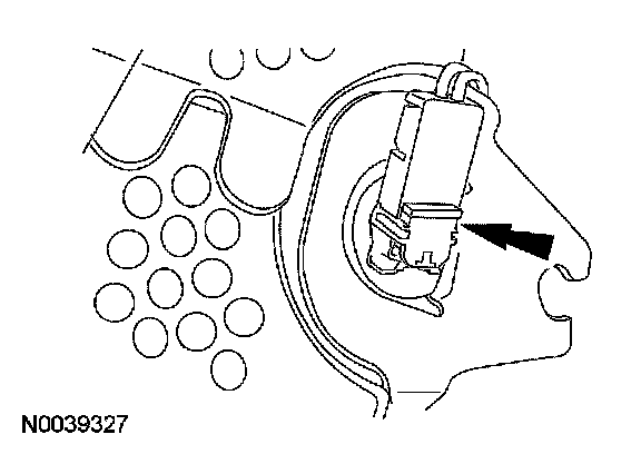 11. CAUTION: Do not pull the passenger air bag module electrical connector out by the locking button. Damage to the locking button may occur.