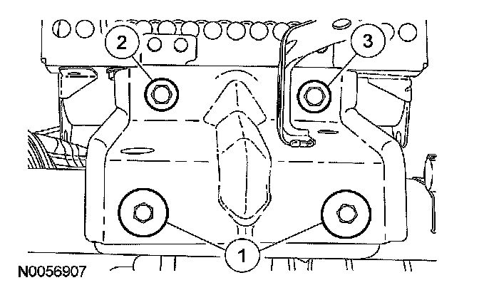 4. NOTE: To avoid a squeak or rattle condition, install the passenger air bag module bracket and passenger air bag module bolts in this order.