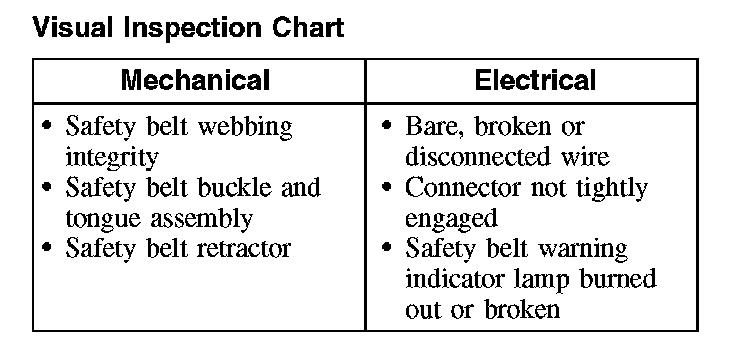 3. If the inspection reveals an obvious concern(s) that can be readily identified, service as required. With the exception of removing a twist from the safety belt webbing, do not attempt to repair a component of the safety belt system; new components must be installed.