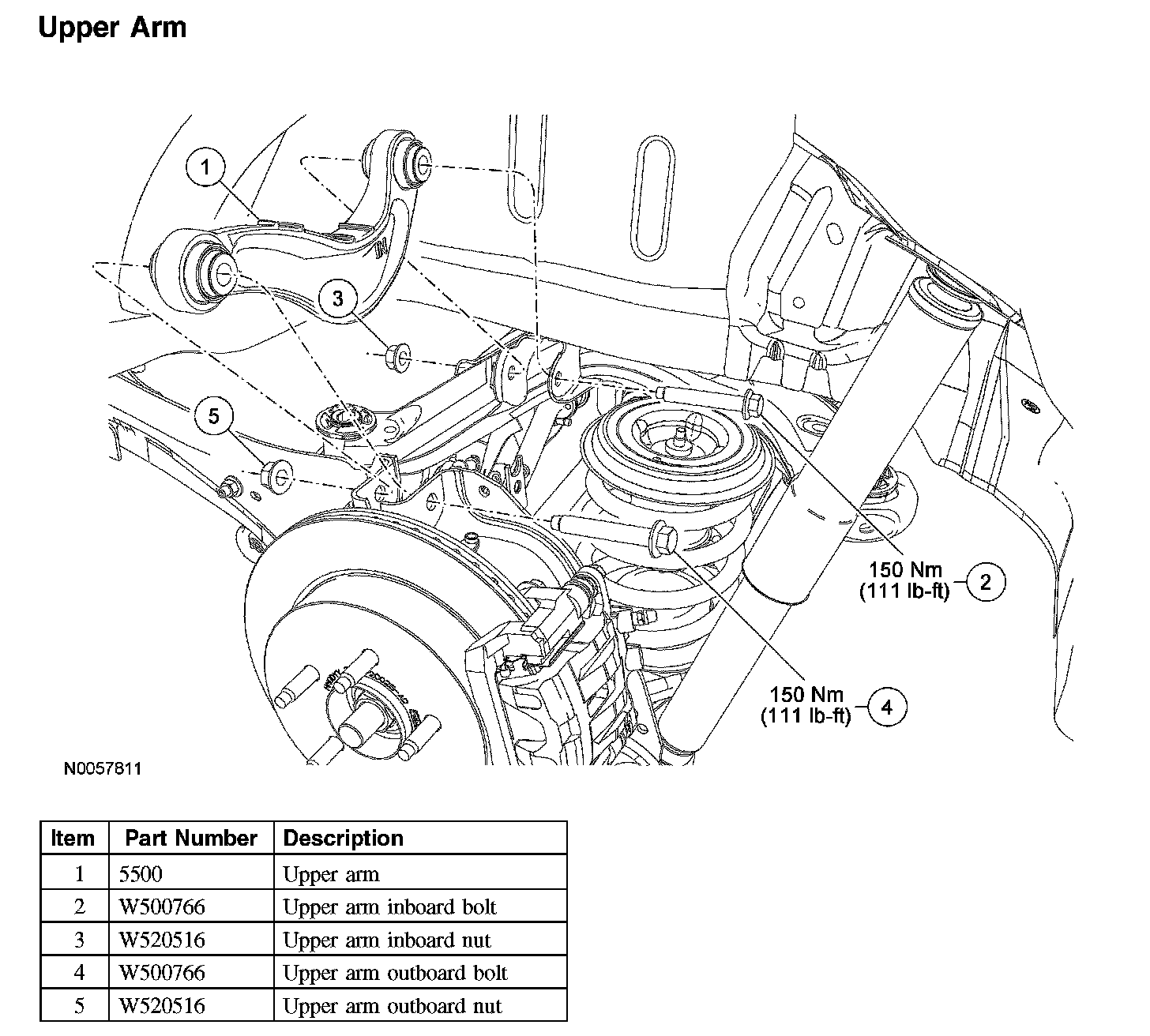 3. Remove and discard the upper arm outboard bolt and nut.