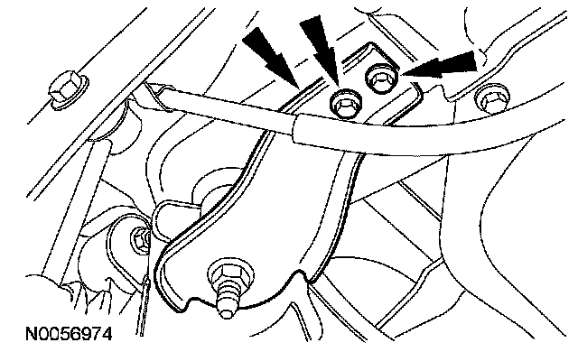 Remove and discard the 2 subframe bushing brace-to-body bolts.