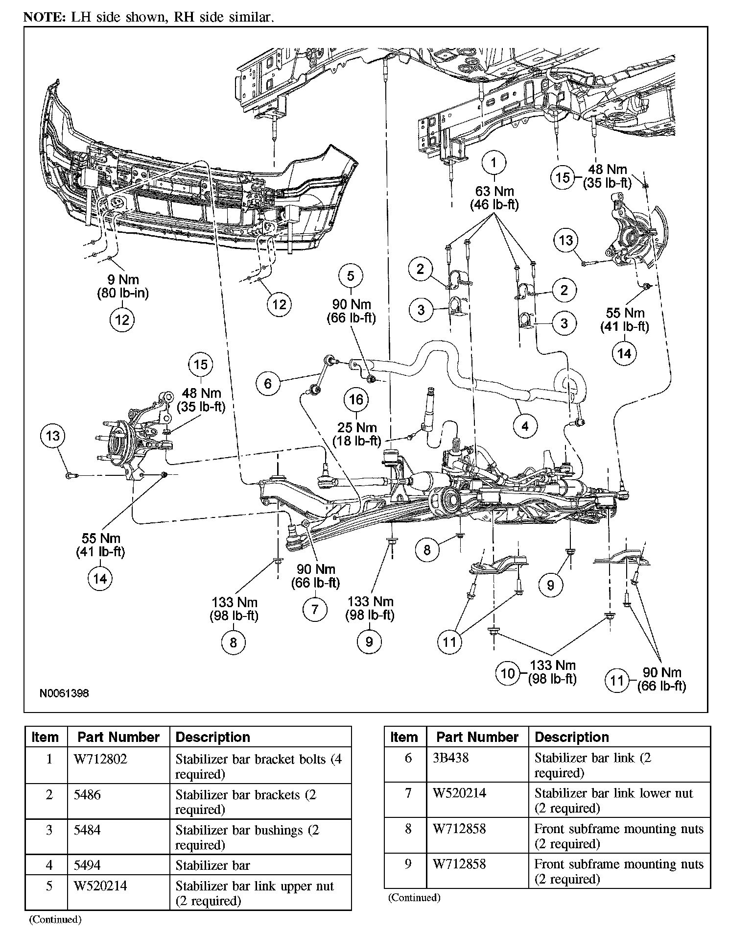 ^ To install, tighten the nuts to 133 Nm (98 ft. lbs).