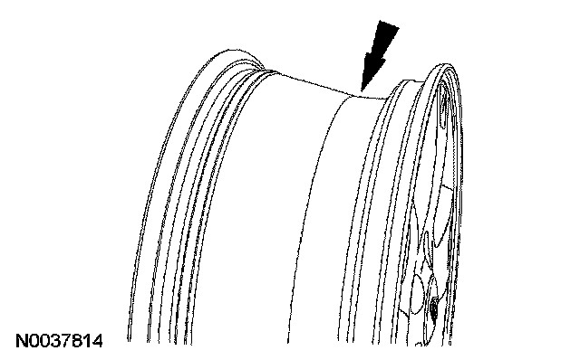 3. NOTE: The sensor and cradle must be positioned with the hinge side of the sensor on the RH side when viewed from the curb side (beauty side) of the wheel.