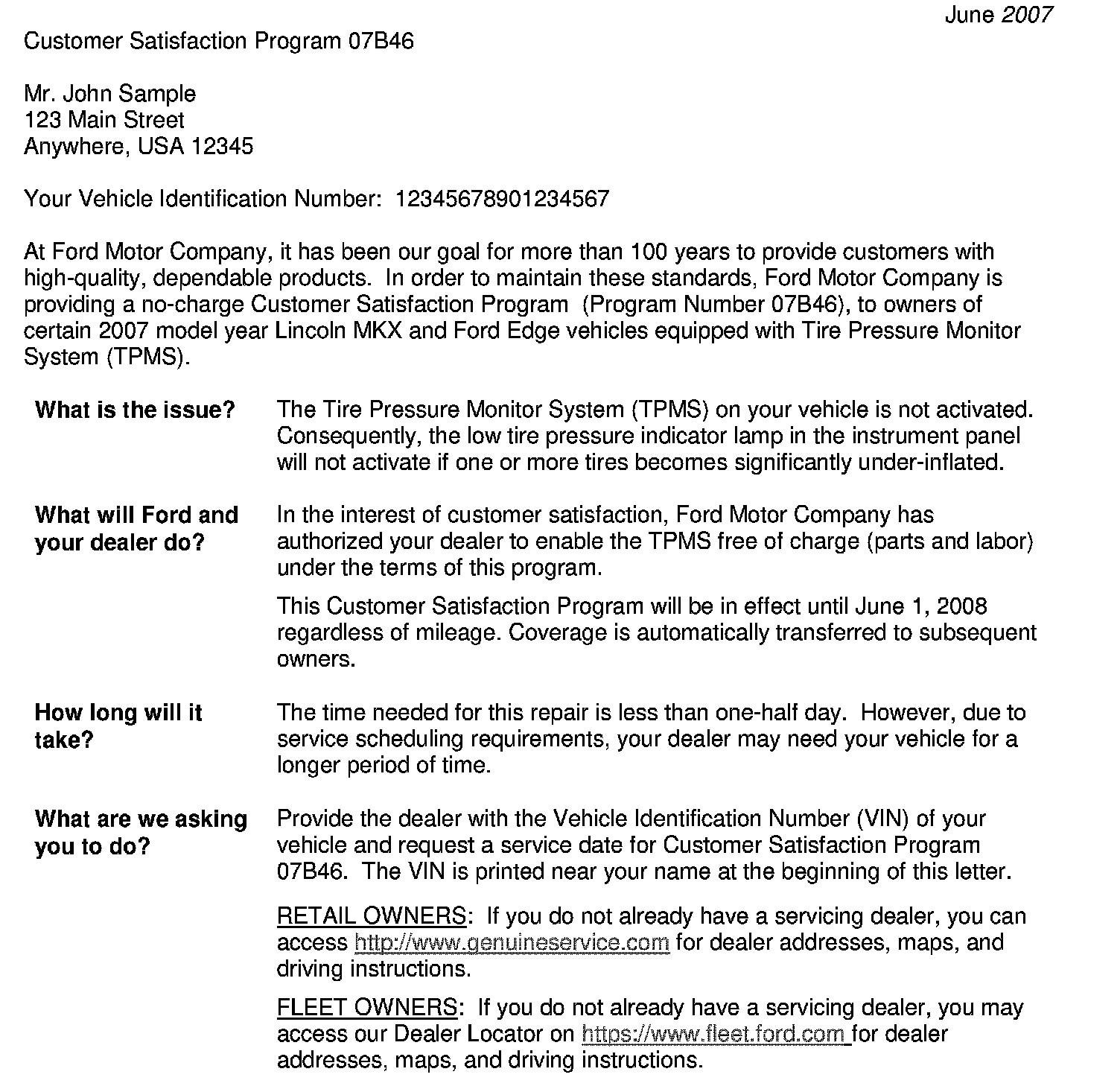 Campaign - Tire Pressure Monitor System Activation