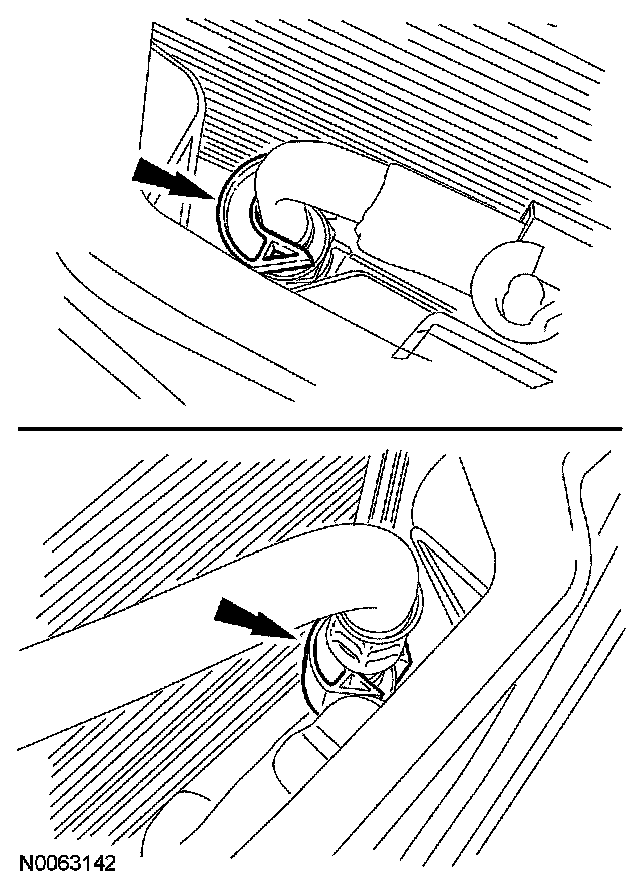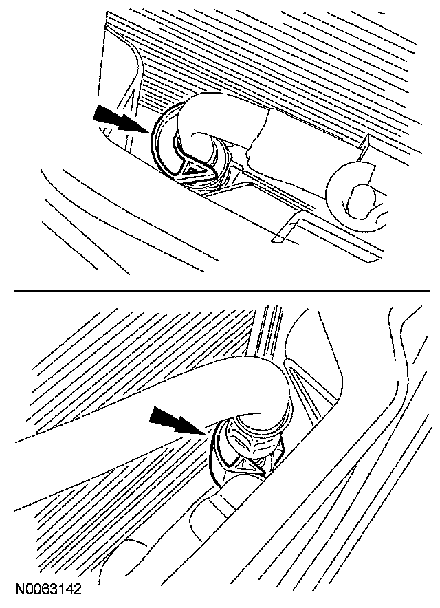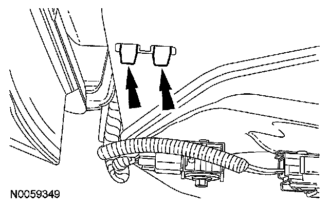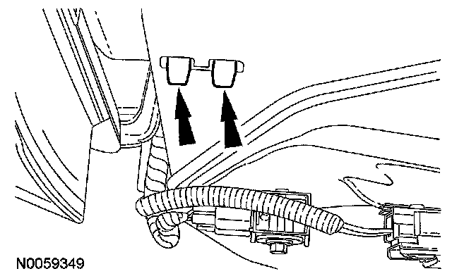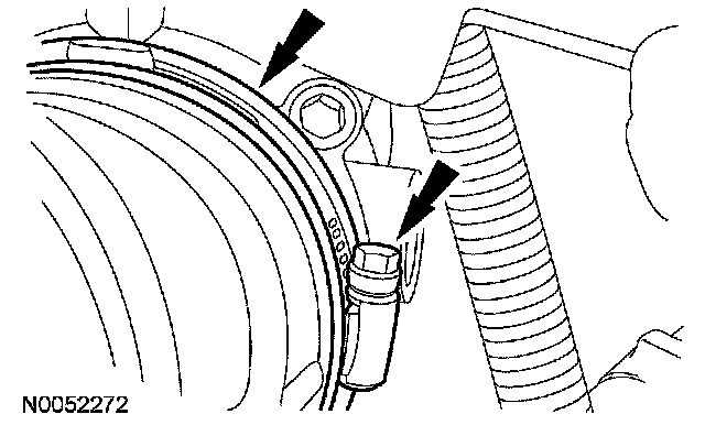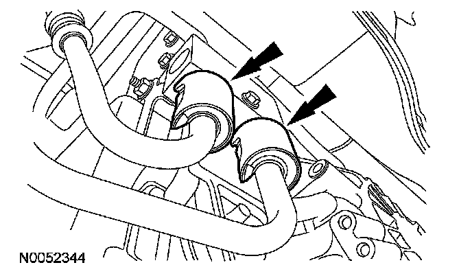 7. Install the 2 secondary latches on the transmission fluid cooler tubes at the transmission fluid cooler thermal bypass valve.
