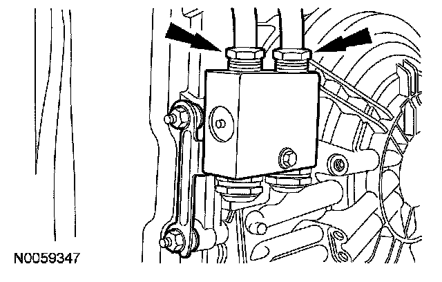 16. Remove the 2 transmission fluid cooler tube bolts.
