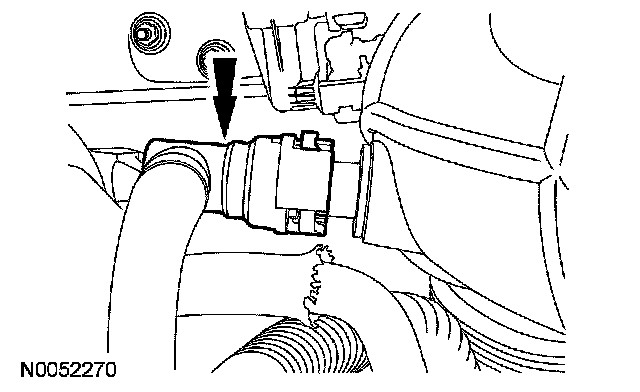 1. Disconnect the mass air flow (MAF) sensor electrical connector and the wiring harness fastener from the air cleaner assembly.
