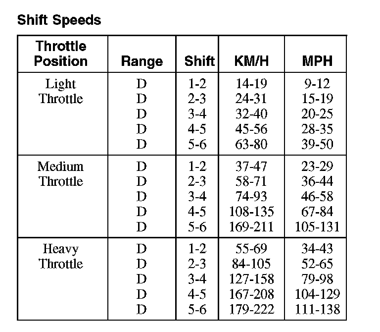 3. NOTE: Shift speed ranges are approximate for all applications.