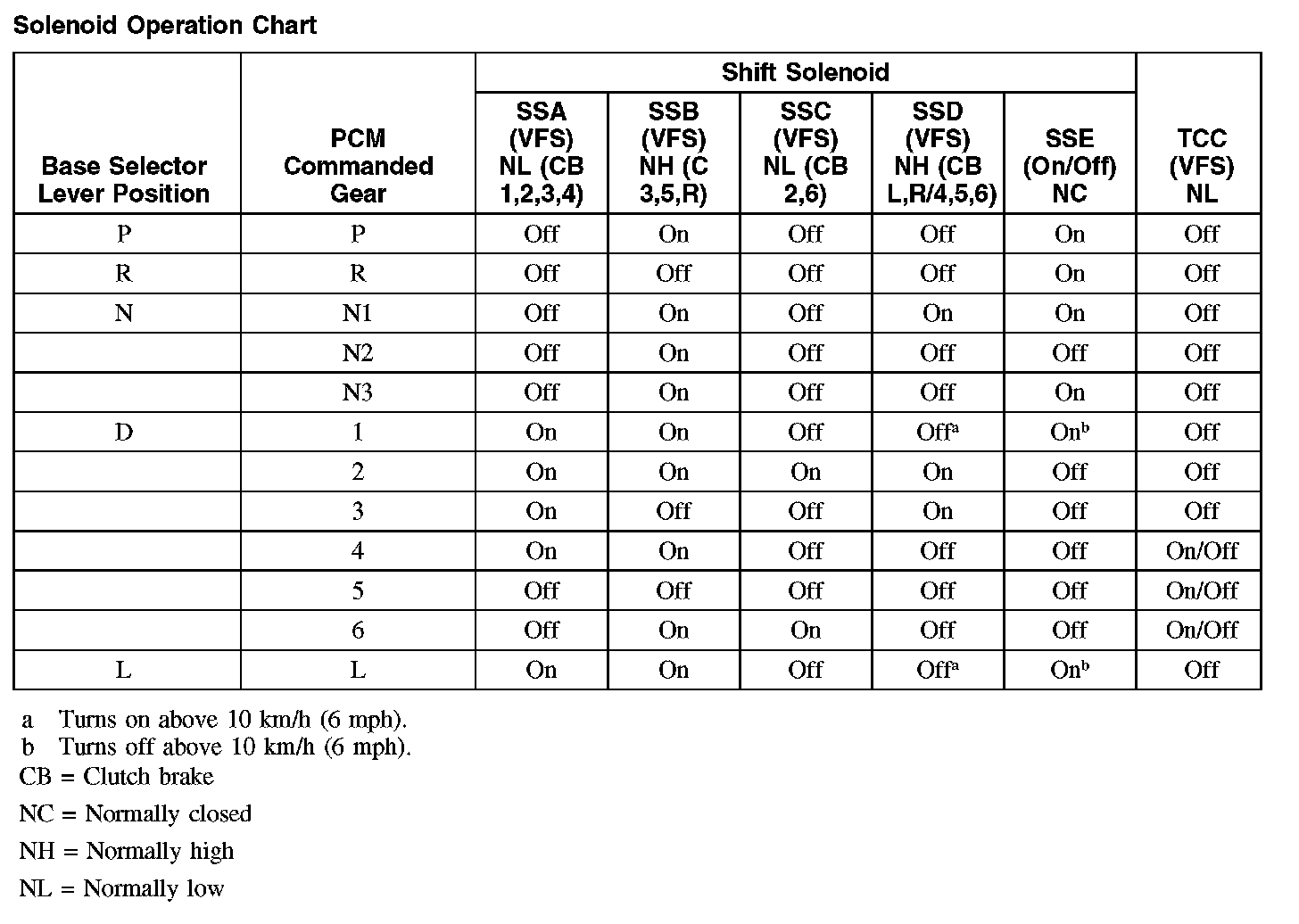 Shift Solenoid Failure Mode Chart "Failed ON" or "Failed OFF"