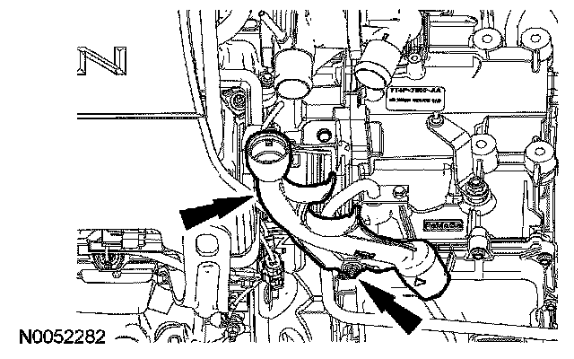 18. Route the coolant hoses in the transmission fluid filler tube.