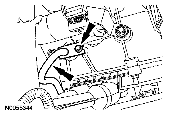 14. Position the transmission fluid cooler tube in place and install the bolt.