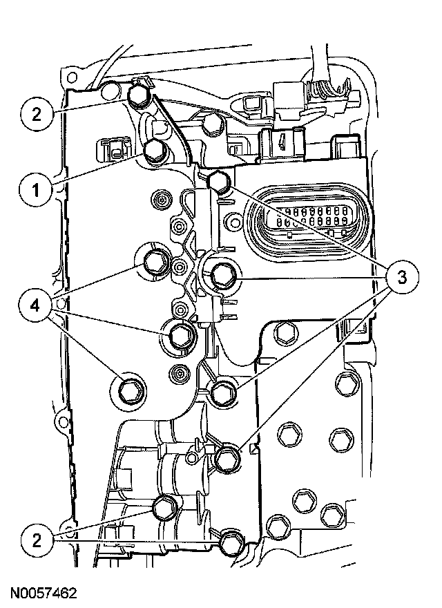 NOTE: The PCM must be updated with a new solenoid body strategy data file and solenoid body ID anytime a new solenoid body is installed. A new solenoid body service tag must be installed over the current solenoid body service tag on top of the transaxle case.