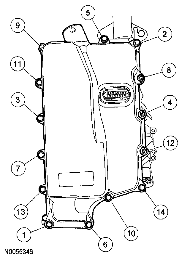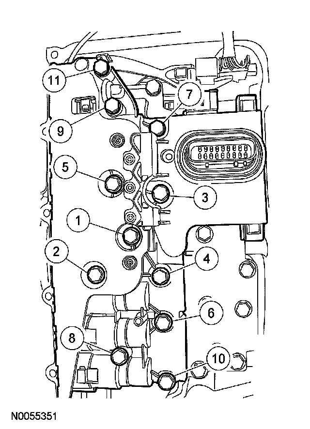 8. CAUTION: Inspect the 20 pin solenoid body connector seal to make sure that the seals is on the inside of the main control cover. Transmission fluid leak will occur.