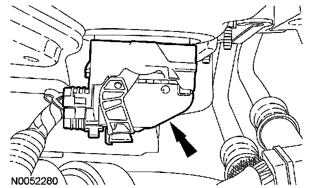 2. Disconnect the mass air flow (MAF) sensor electrical connector and the wiring harness fastener from the air cleaner assembly.
