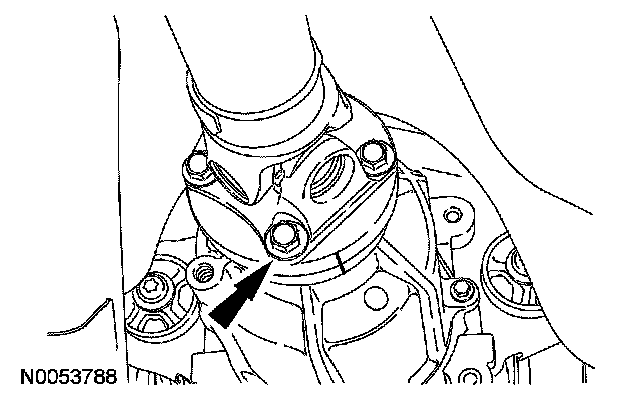 2. Remove and discard the 4 rear driveshaft universal joint flange bolts.