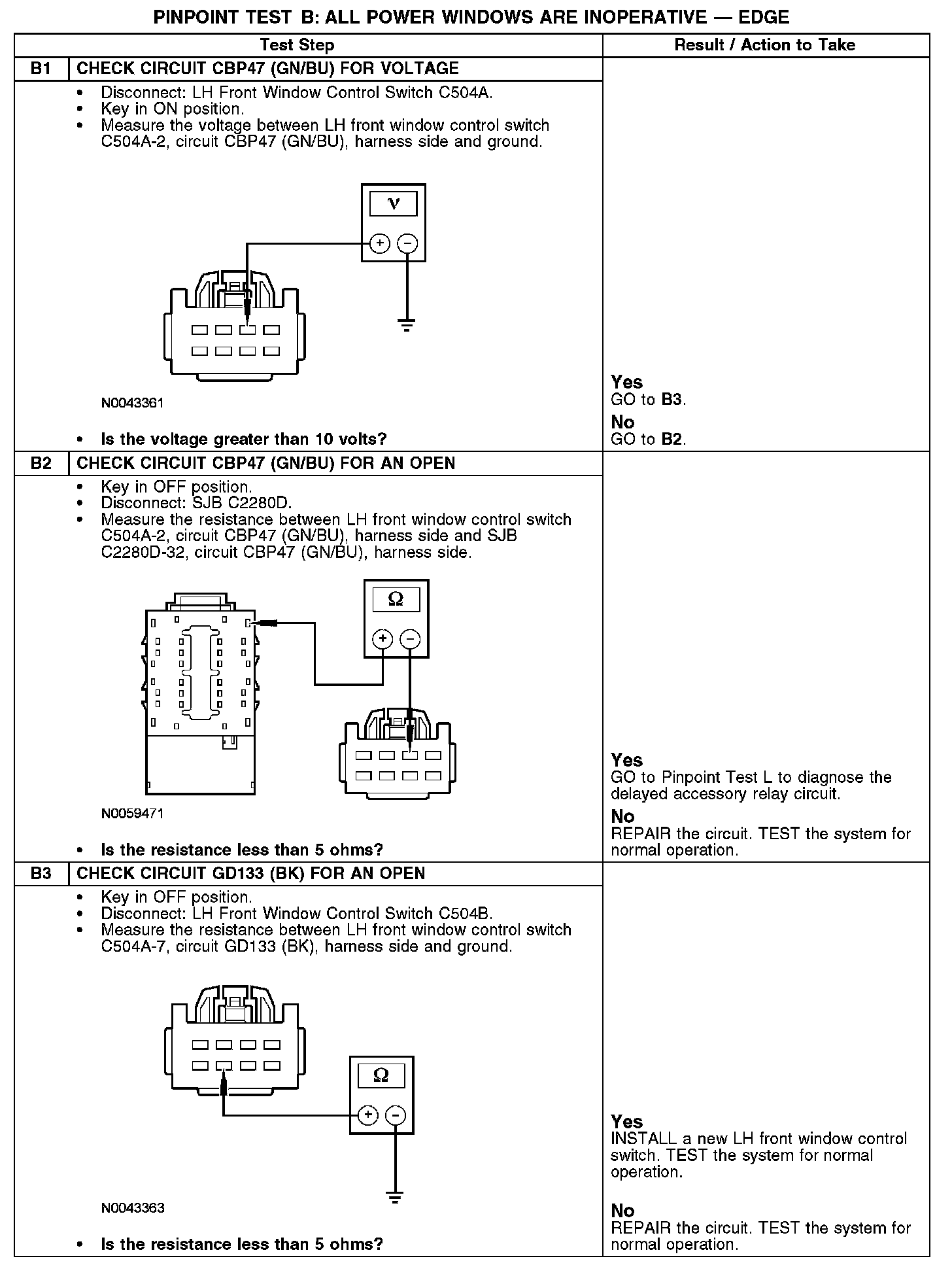 PINPOINT TEST B: ALL POWER WINDOWS ARE INOPERATIVE - EDGEB1-B3: