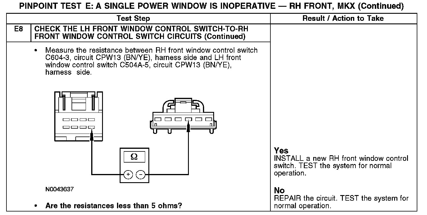 Test E: A Single Power Window Is Inoperative - RH Front, MKX