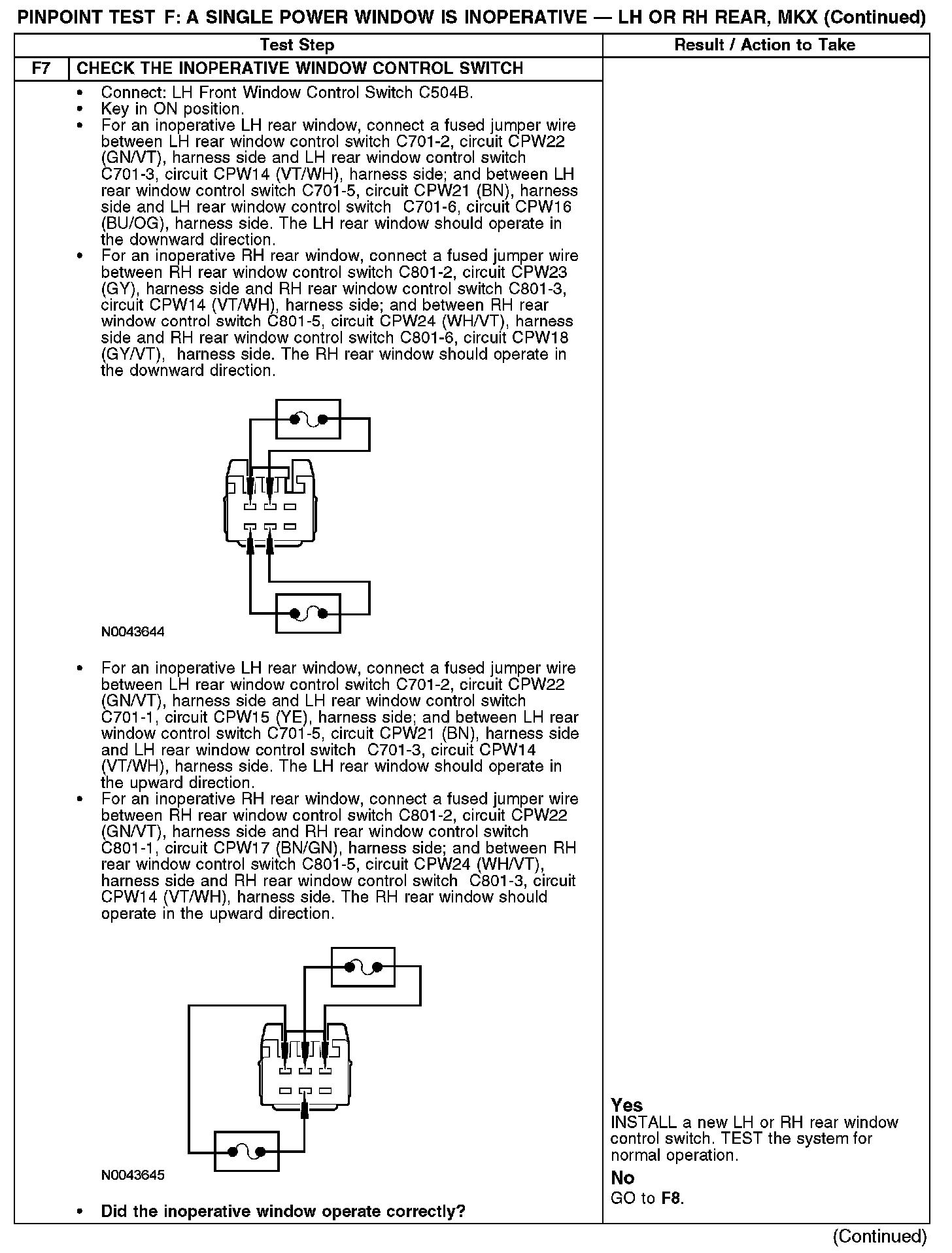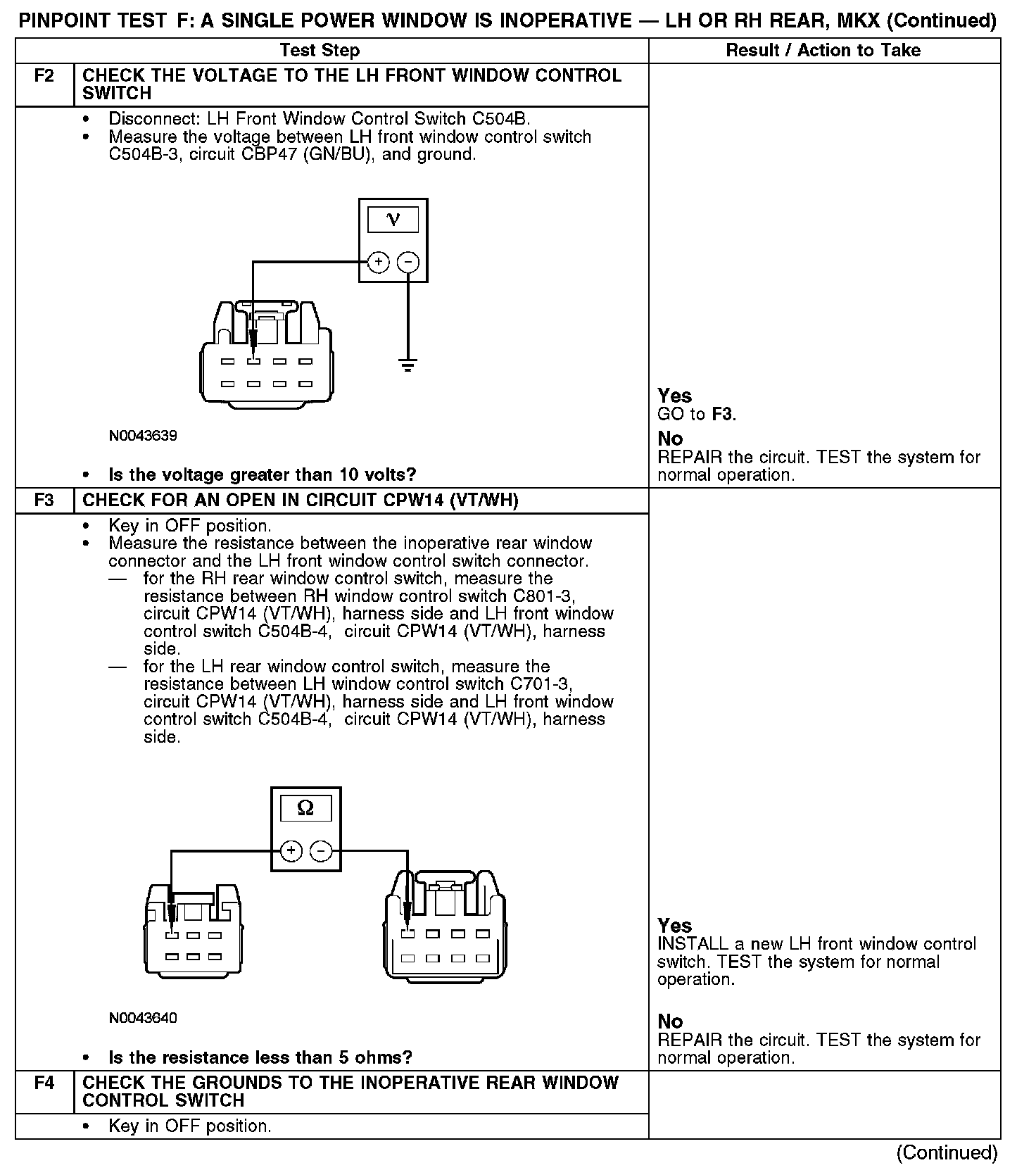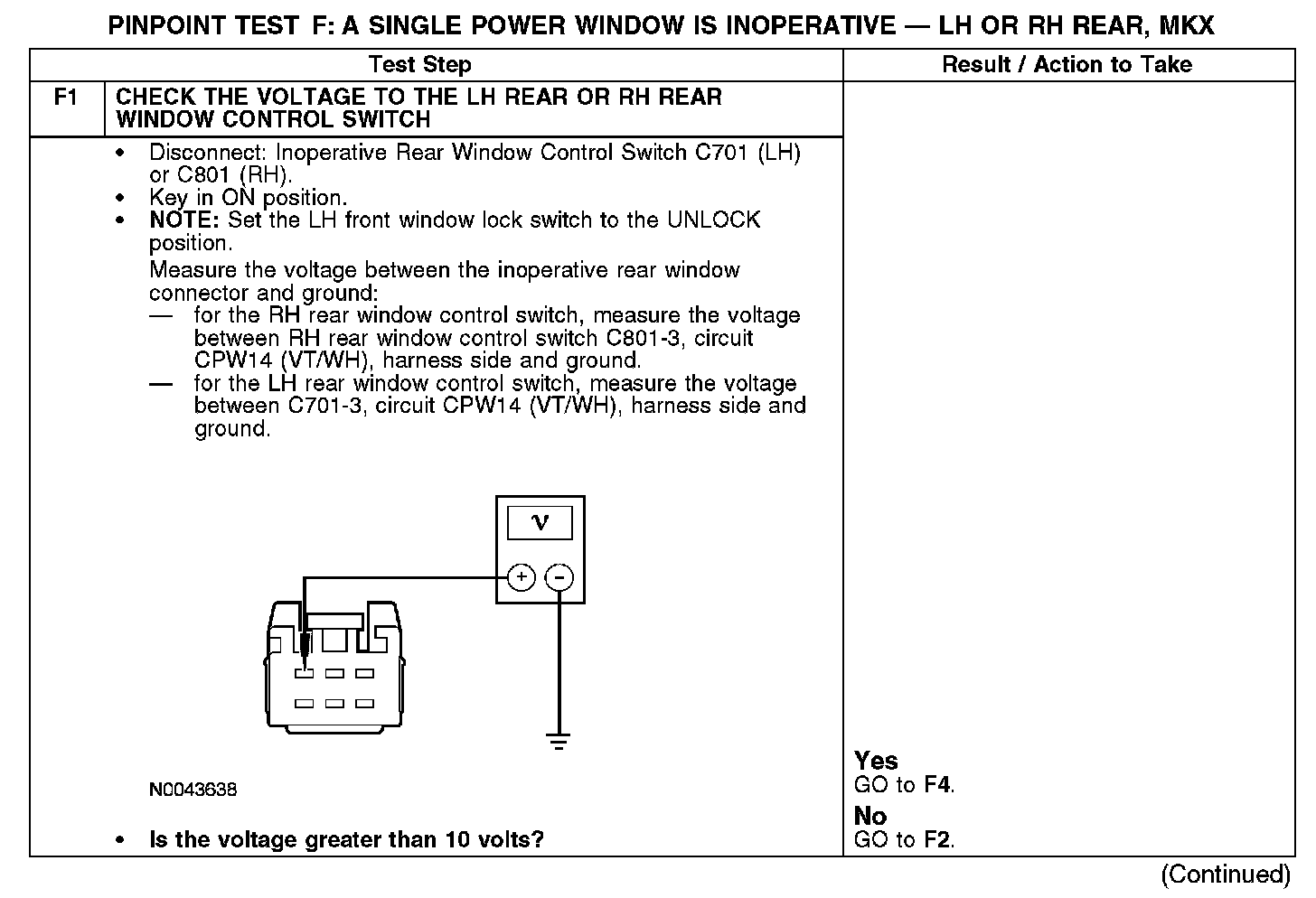 Test F: A Single Power Window Is Inoperative - LH or RH Rear, MKX