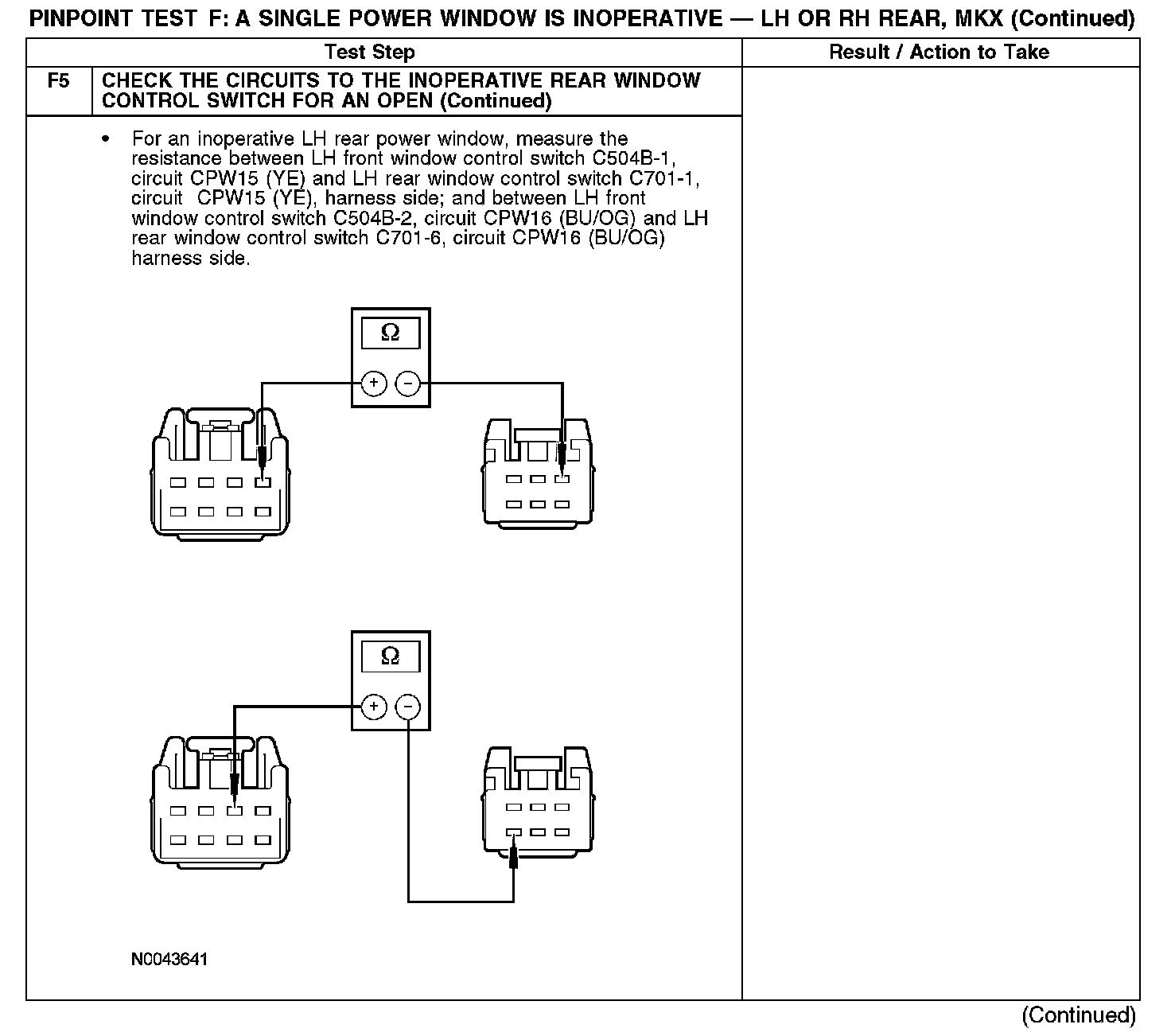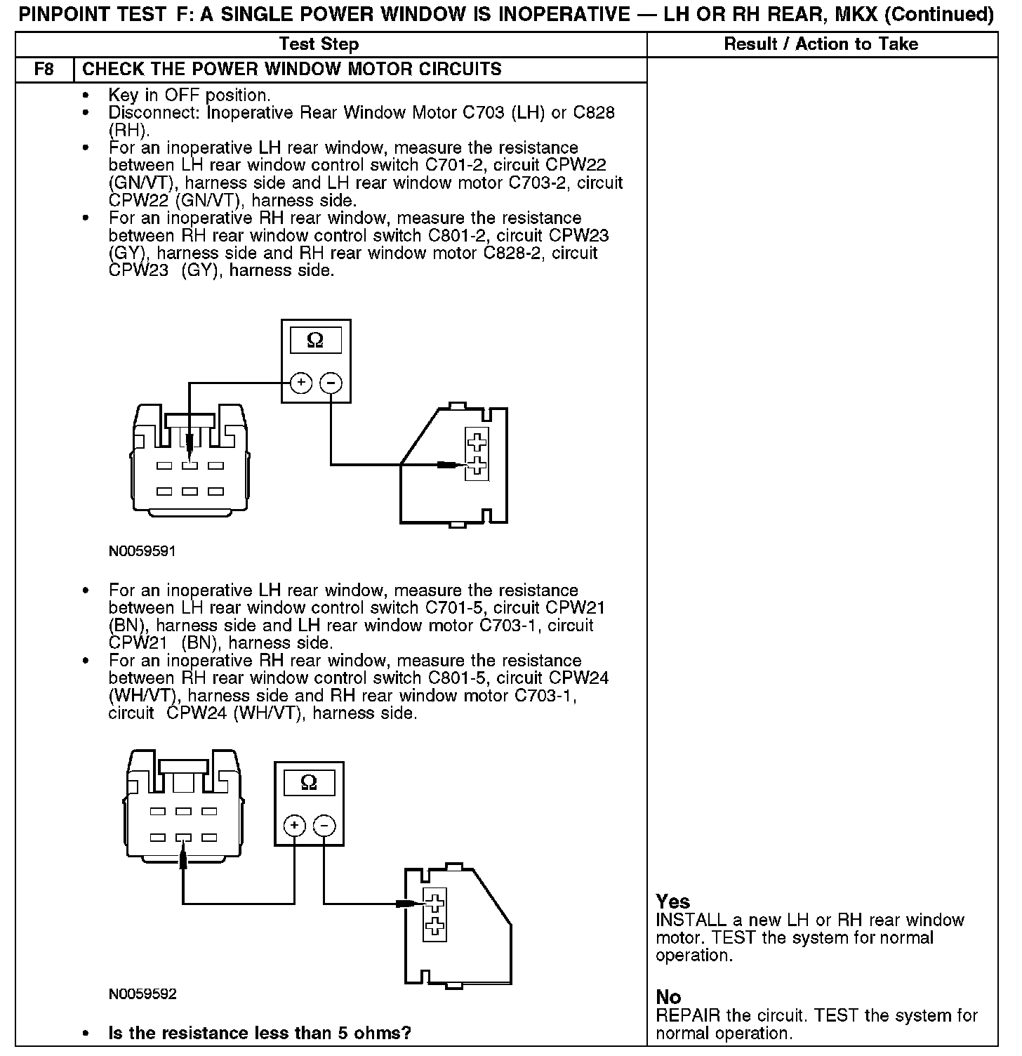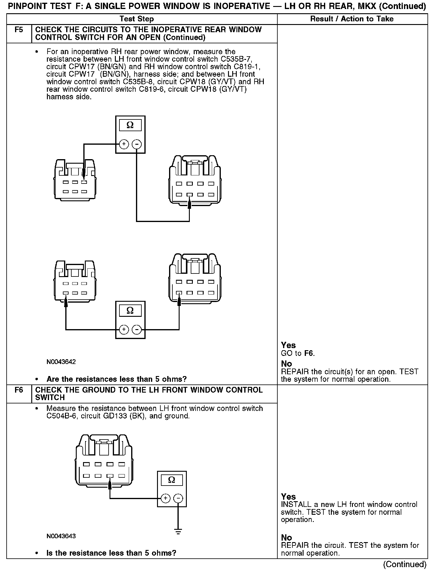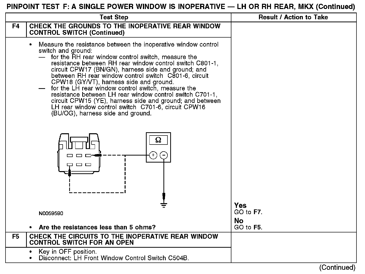 Test F: A Single Power Window Is Inoperative - LH or RH Rear, MKX
