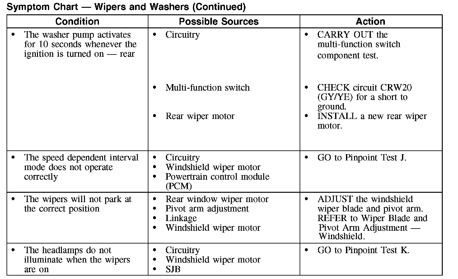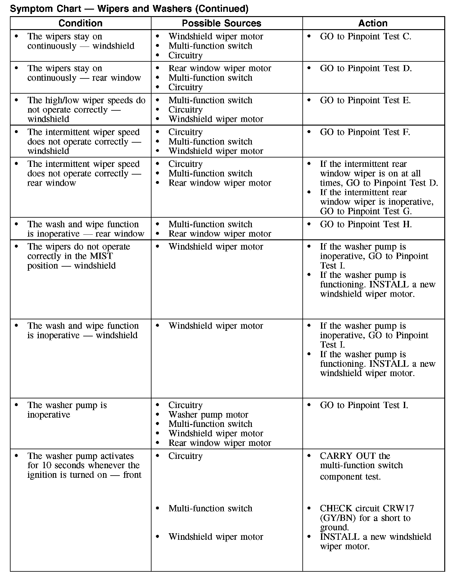 Symptom Chart - Wipers and Washers (Part 2):