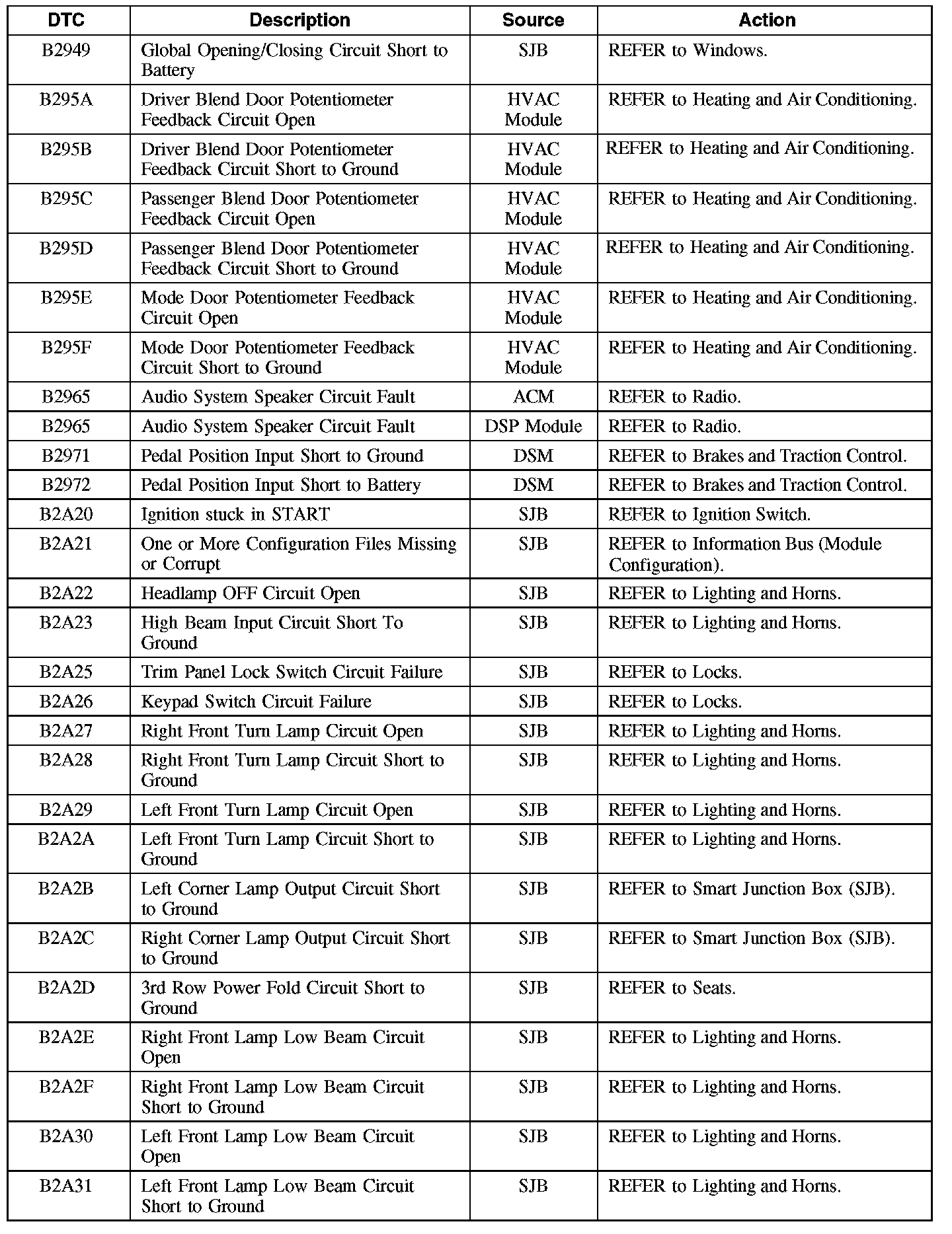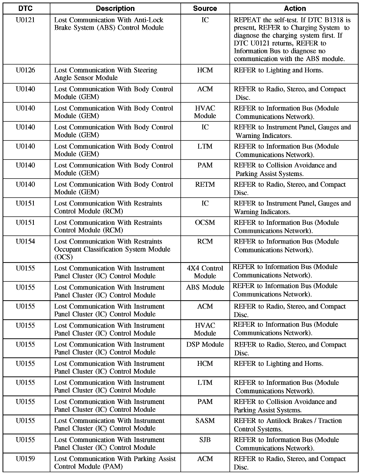 Diagnostic Trouble Code (DTC) Chart