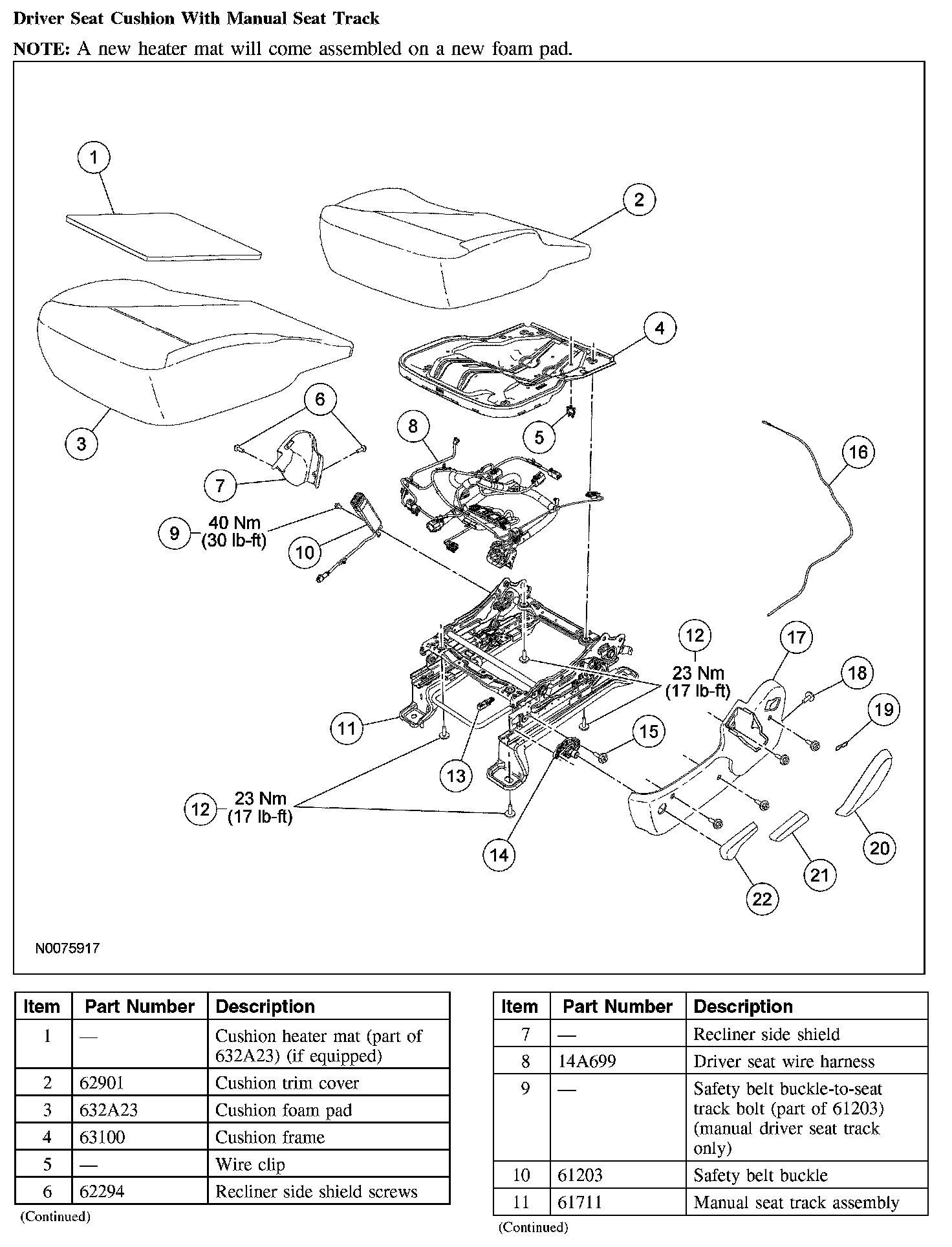 Driver Seat Cushion With Manual Seat Track (Part 2):