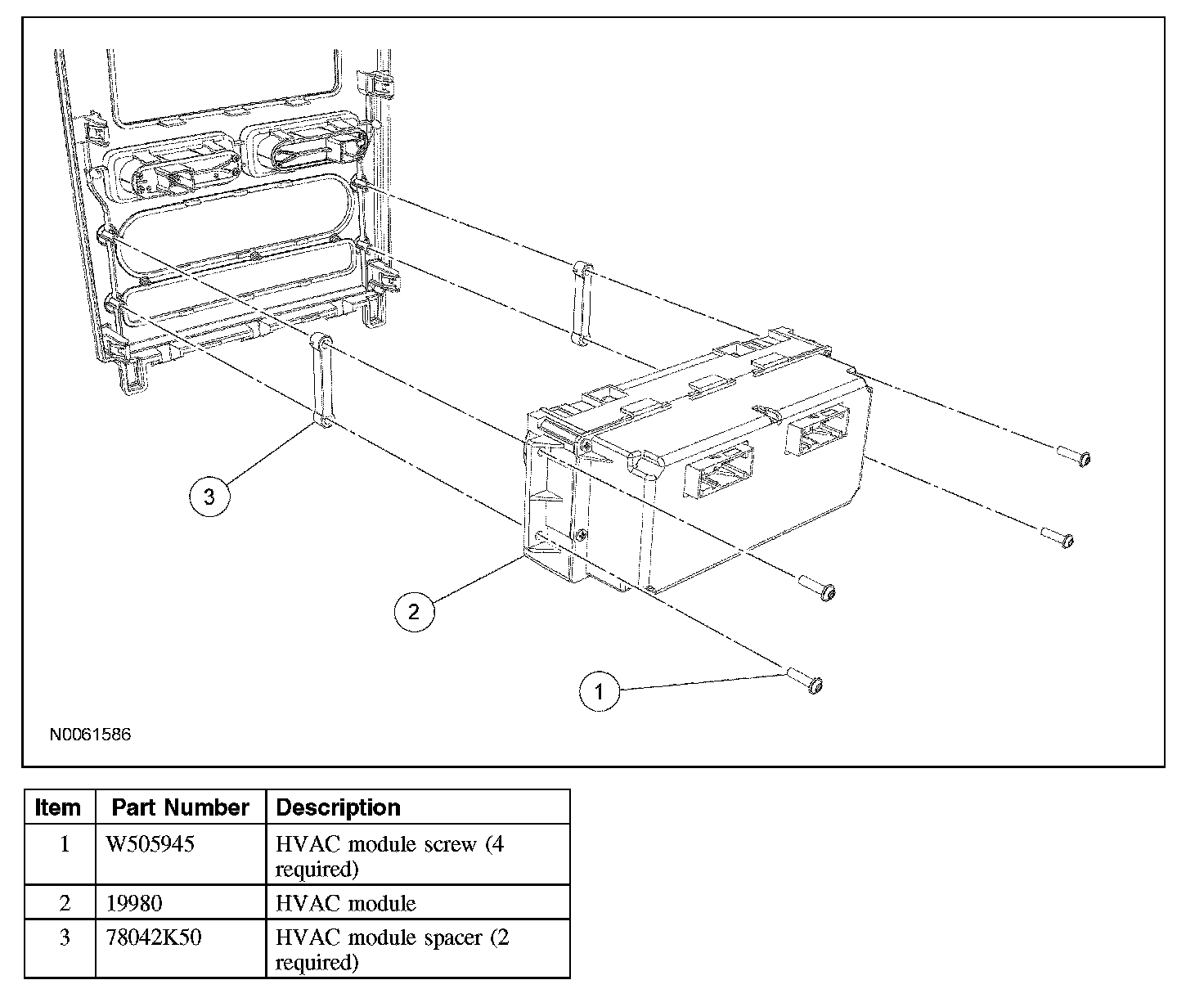 4. NOTE: Be sure the HVAC module spacers are correctly positioned before installing the HVAC module.