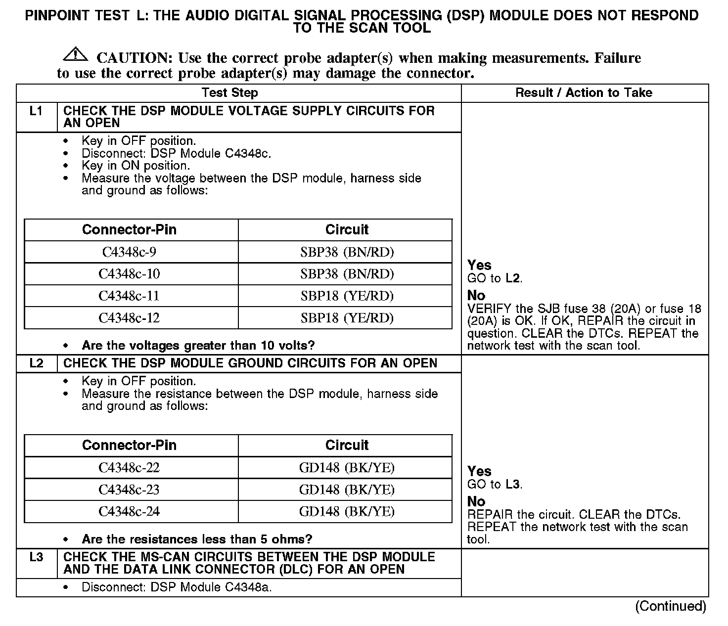 PINPOINT TEST L: THE AUDIO DIGITAL SIGNAL PROCESSING (DSP) MODULE DOES NOT RESPOND TO THE SCAN TOOLNormal Operation