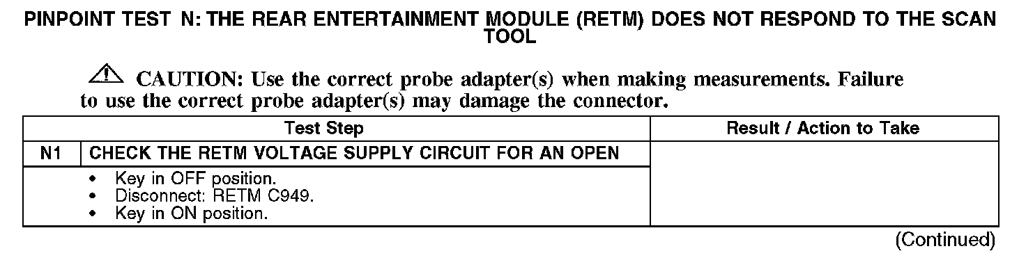 PINPOINT TEST N: THE REAR ENTERTAINMENT MODULE (RETM) DOES NOT RESPOND TO THE SCAN TOOL