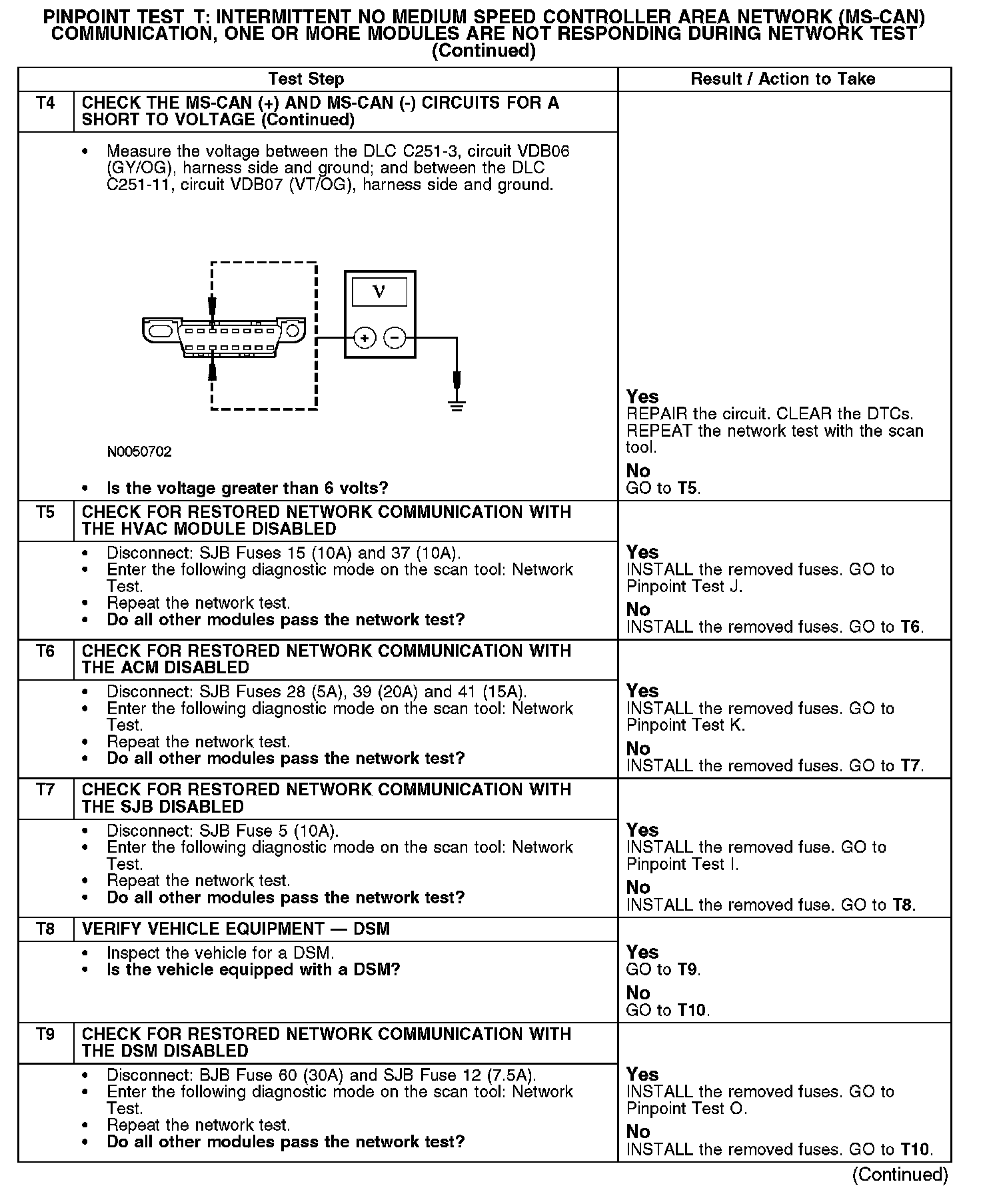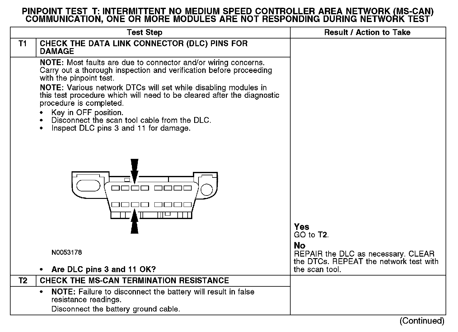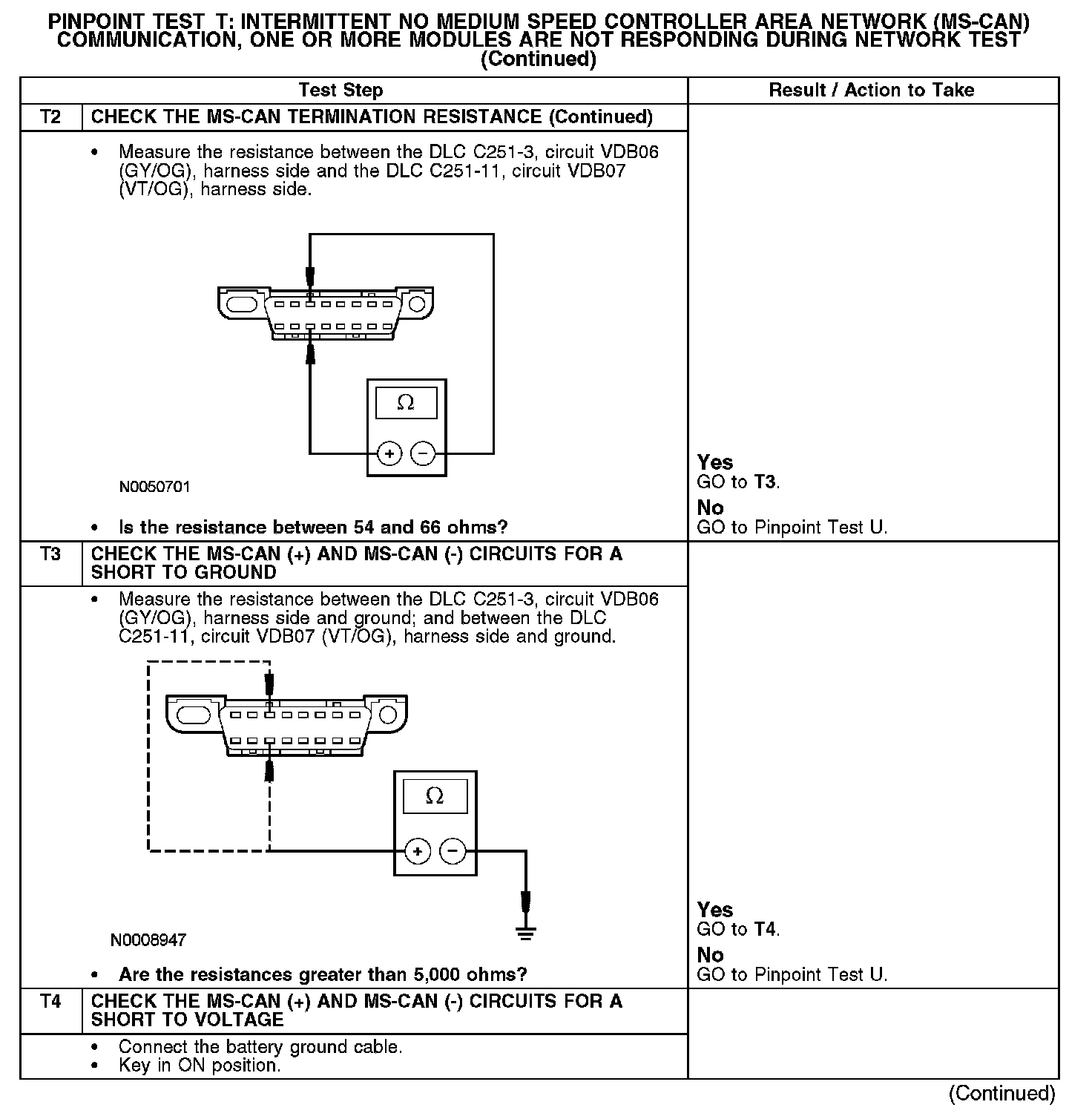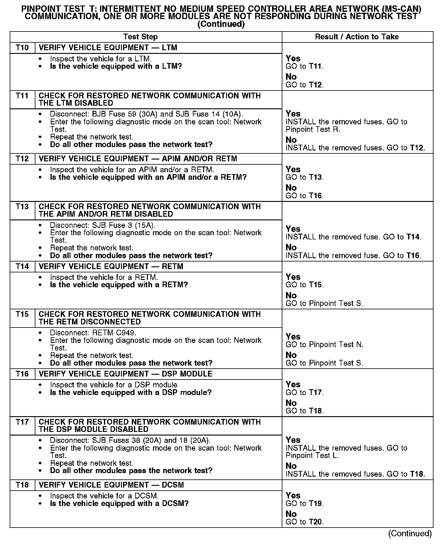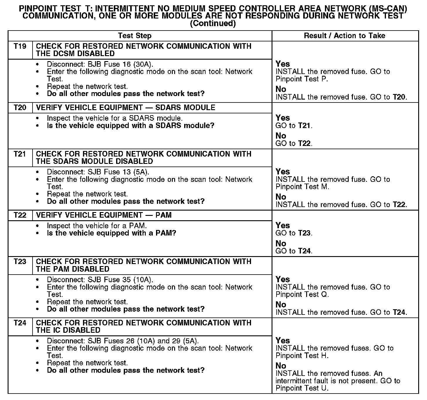 Test T: Intermittent No Medium Speed Controller Area Network (MS-CAN) Communication, One Or More Modules Are Not Responding Dur