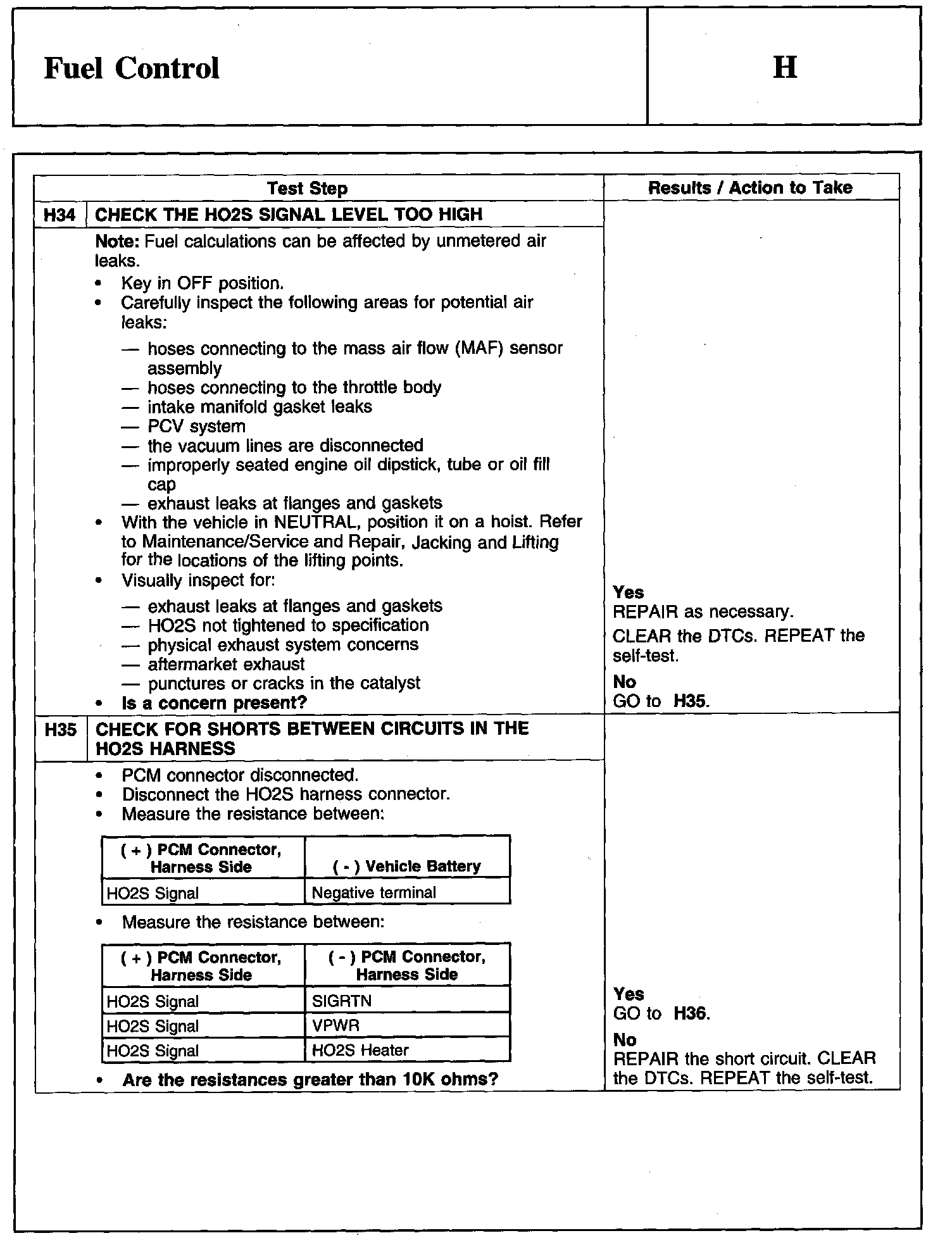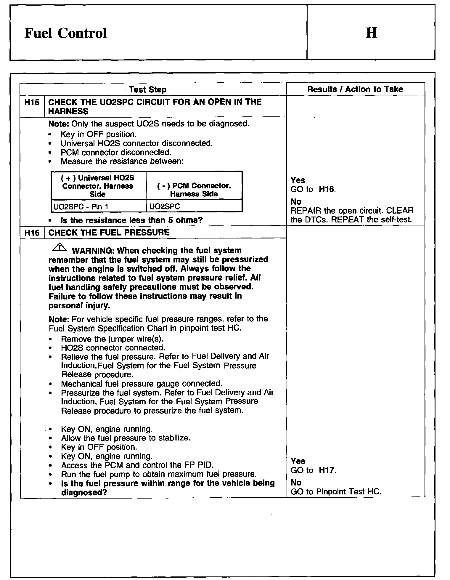 PINPOINT TEST H: FUEL CONTROL