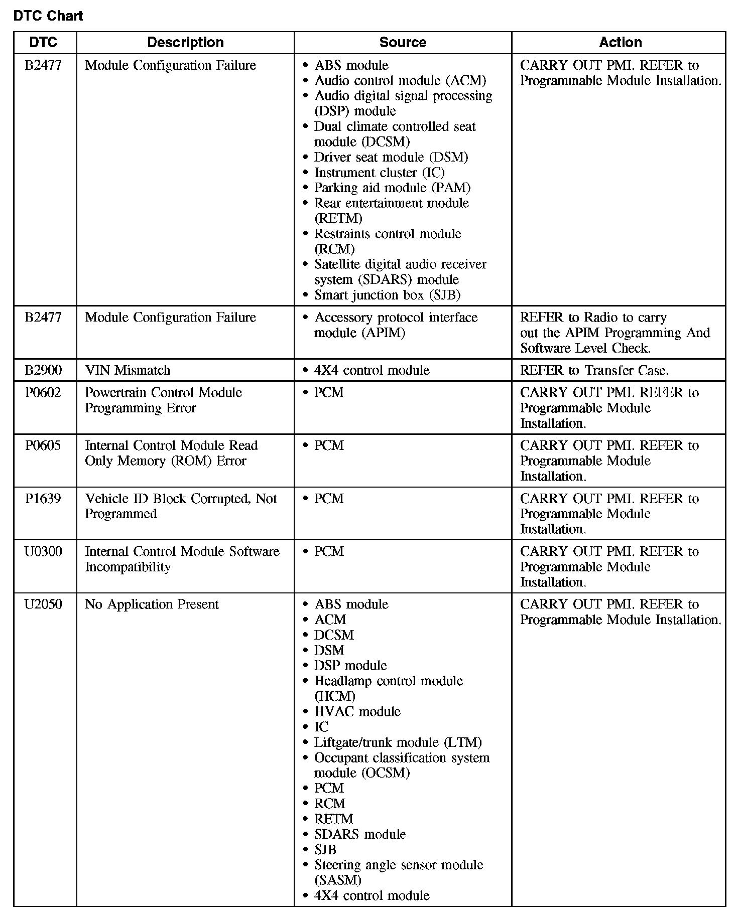 B2477-B2900 / P0602-P1639 / U0300-U2050: