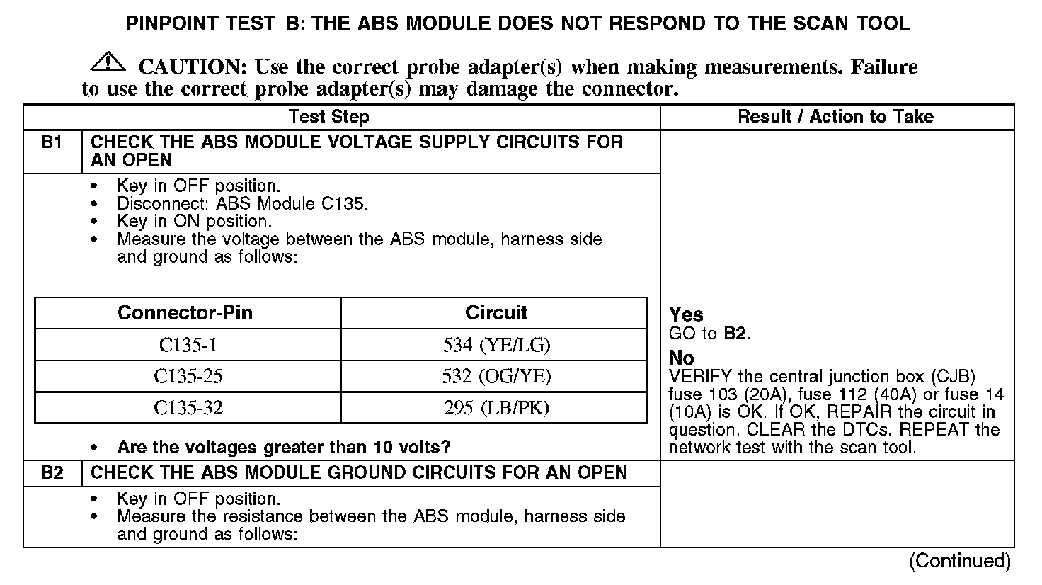 Test B: The ABS Module Does Not Respond To The Scan Tool