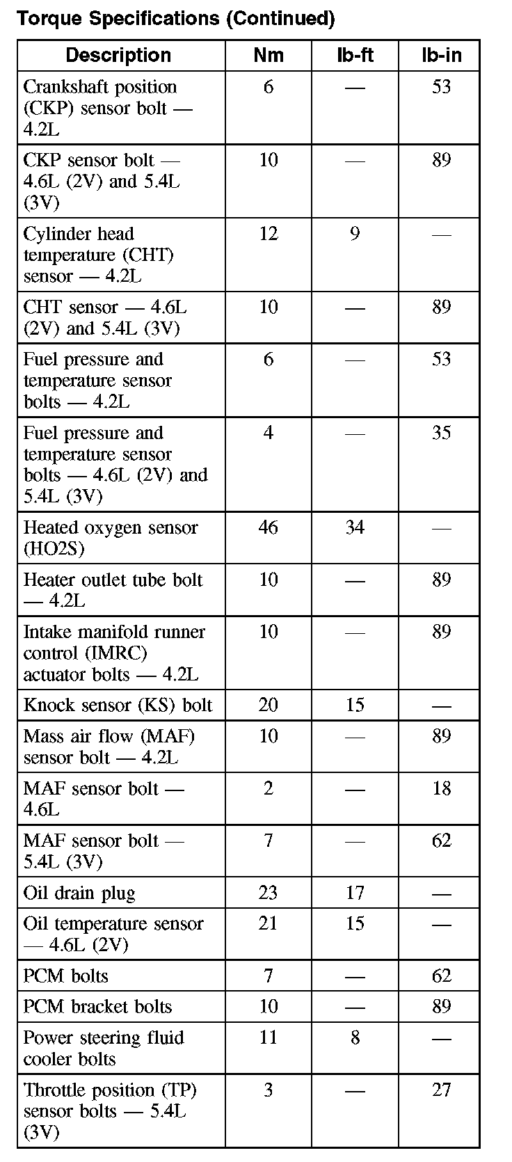 Torque Specifications (Part 3):