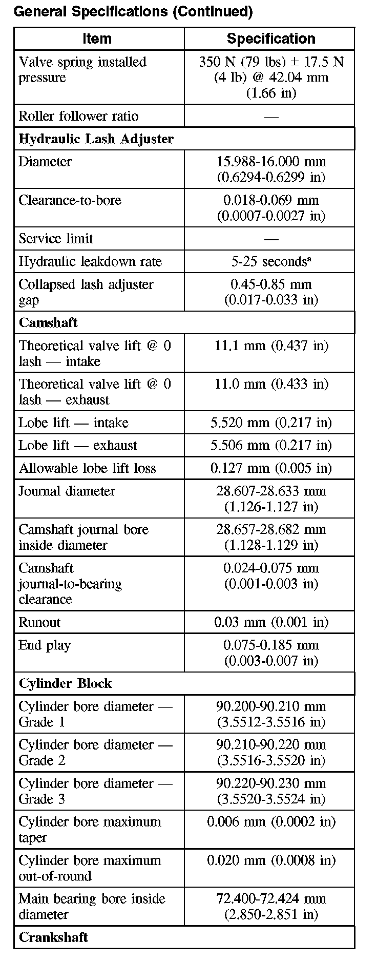 General Specifications