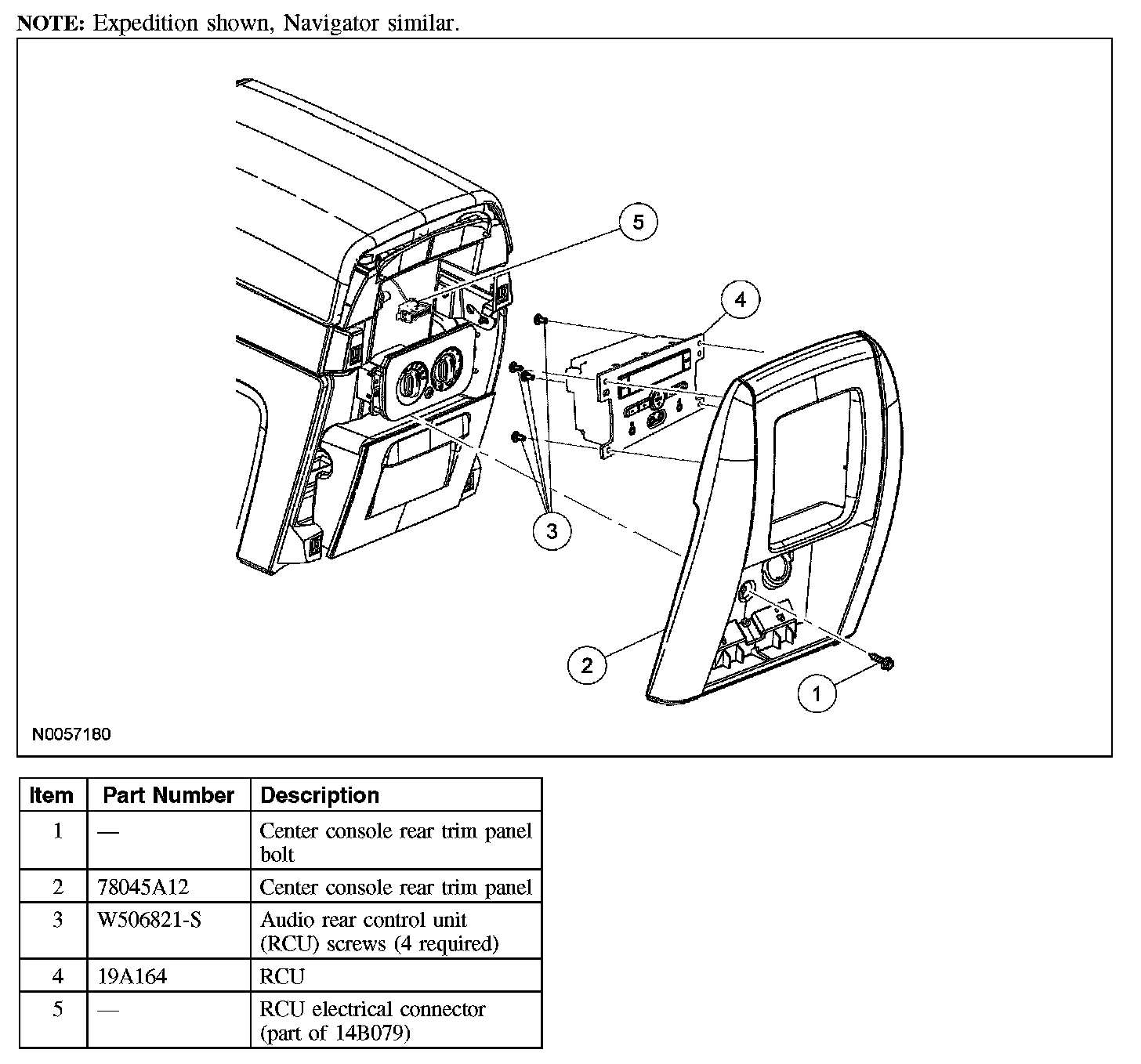 AUDIO REAR CONTROL UNIT (RCU)Removal and Installation