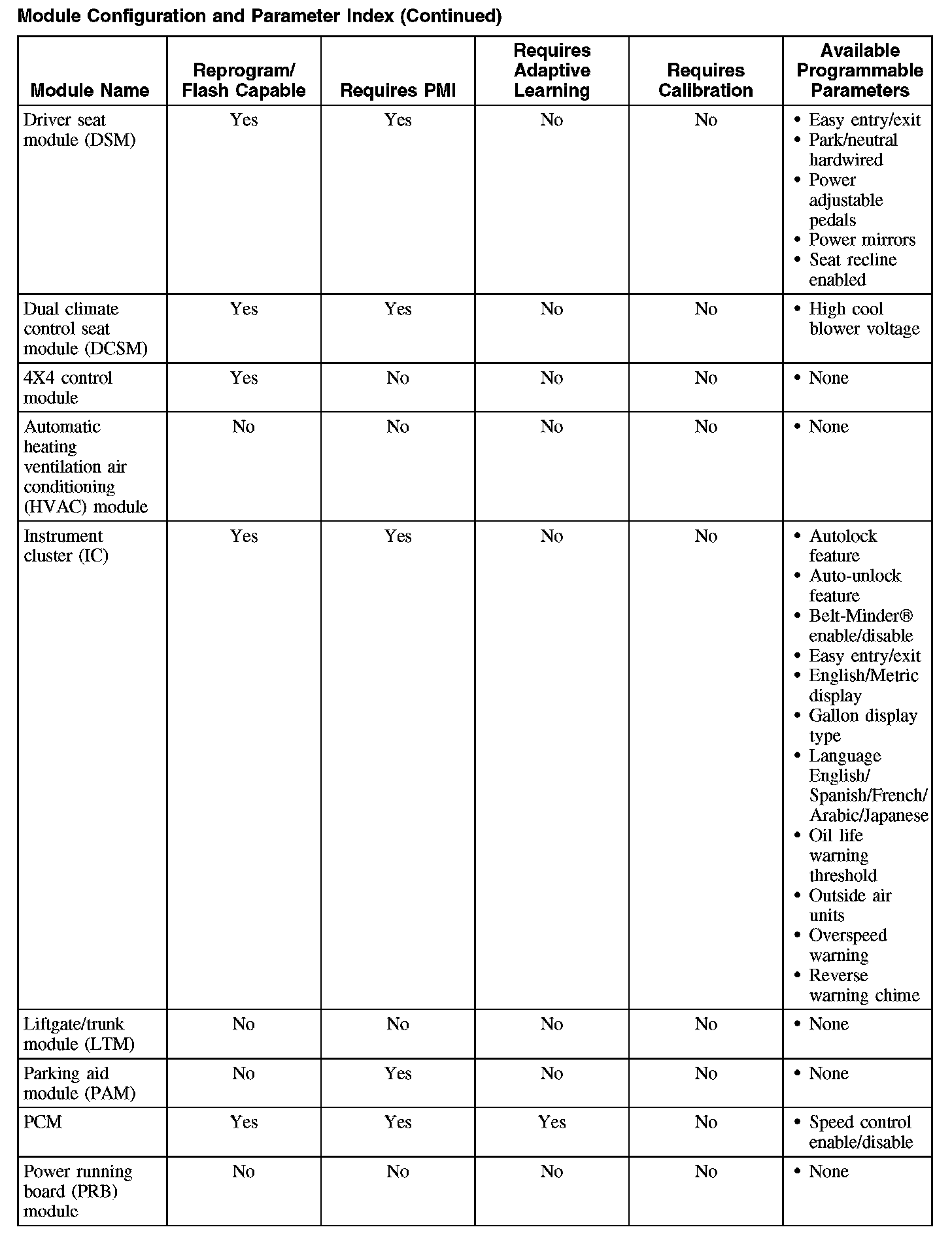 Programmable parameters are customer preference items that may be modified by the dealer via scan tool or in some cases modified by the customer following a procedure listed in the vehicle Owner's Literature. While many configuration options may exist for a module, only a few of these options are programmable parameters.