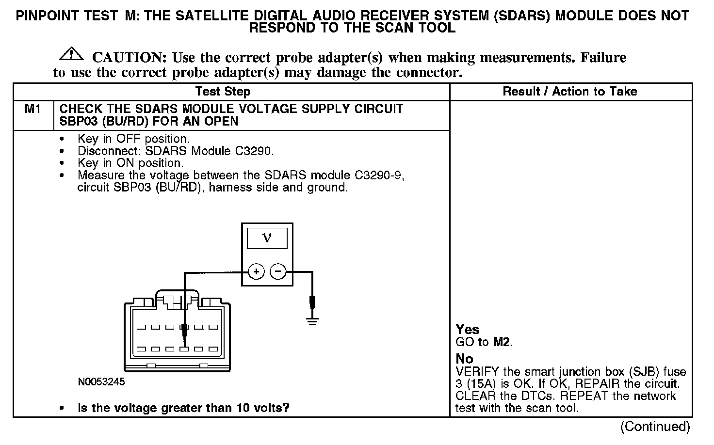 Test M: The Satellite Digital Audio Receiver System (SDARS) Module Does Not Respond To The Scan Tool