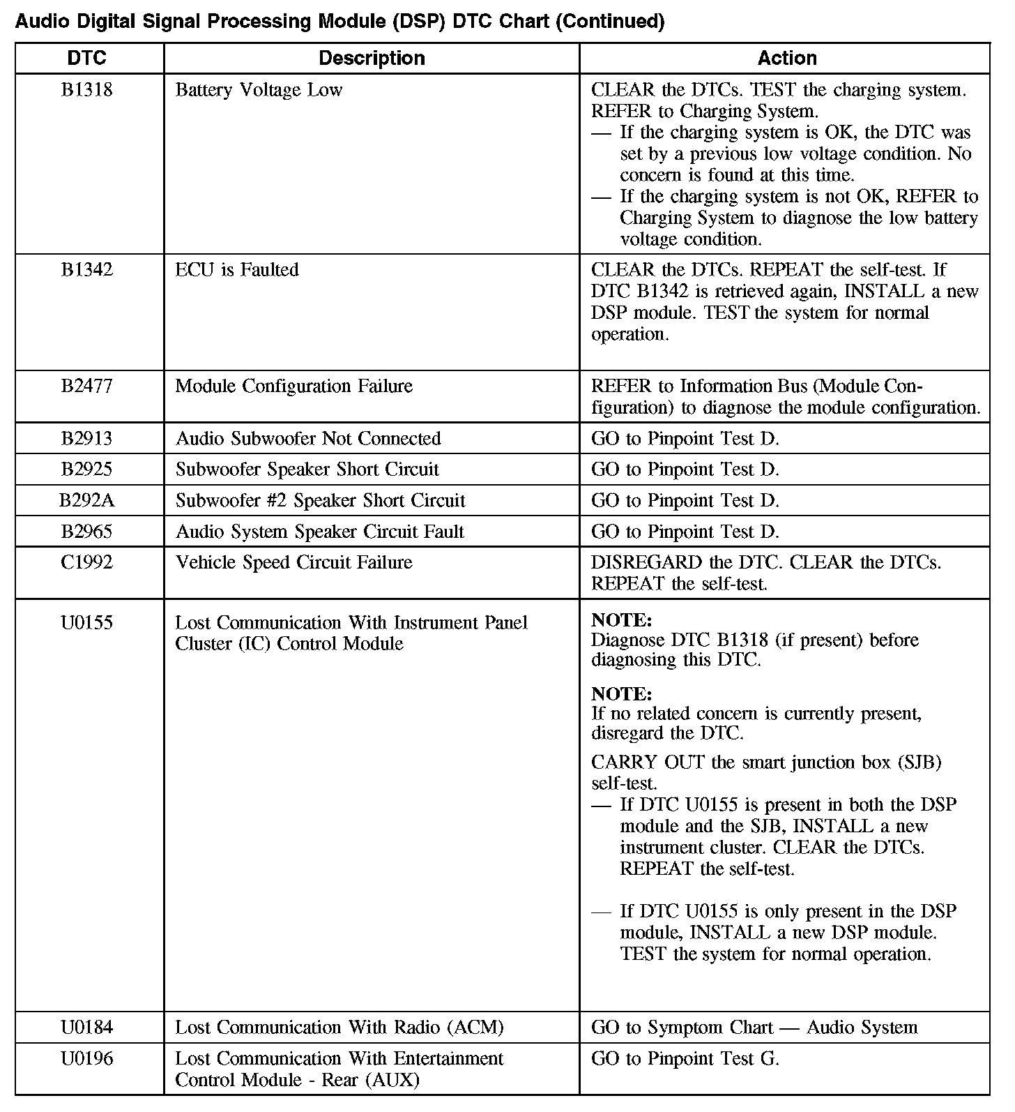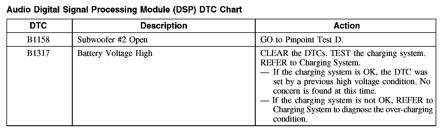 Audio Digital Signal Processing Module (DSP) DTC Chart