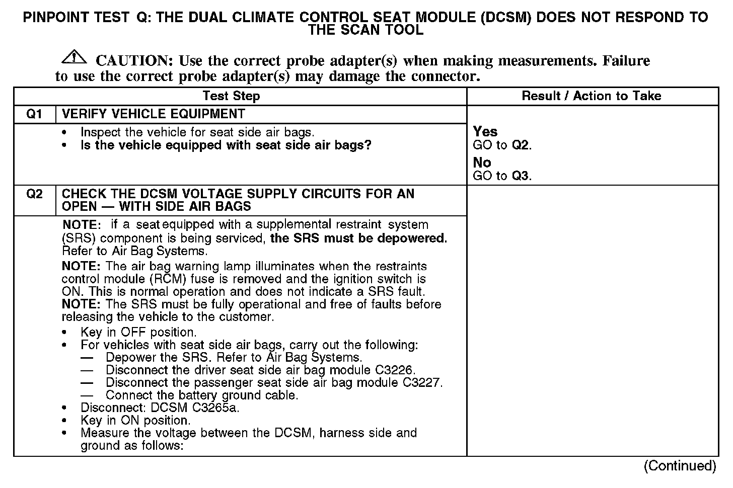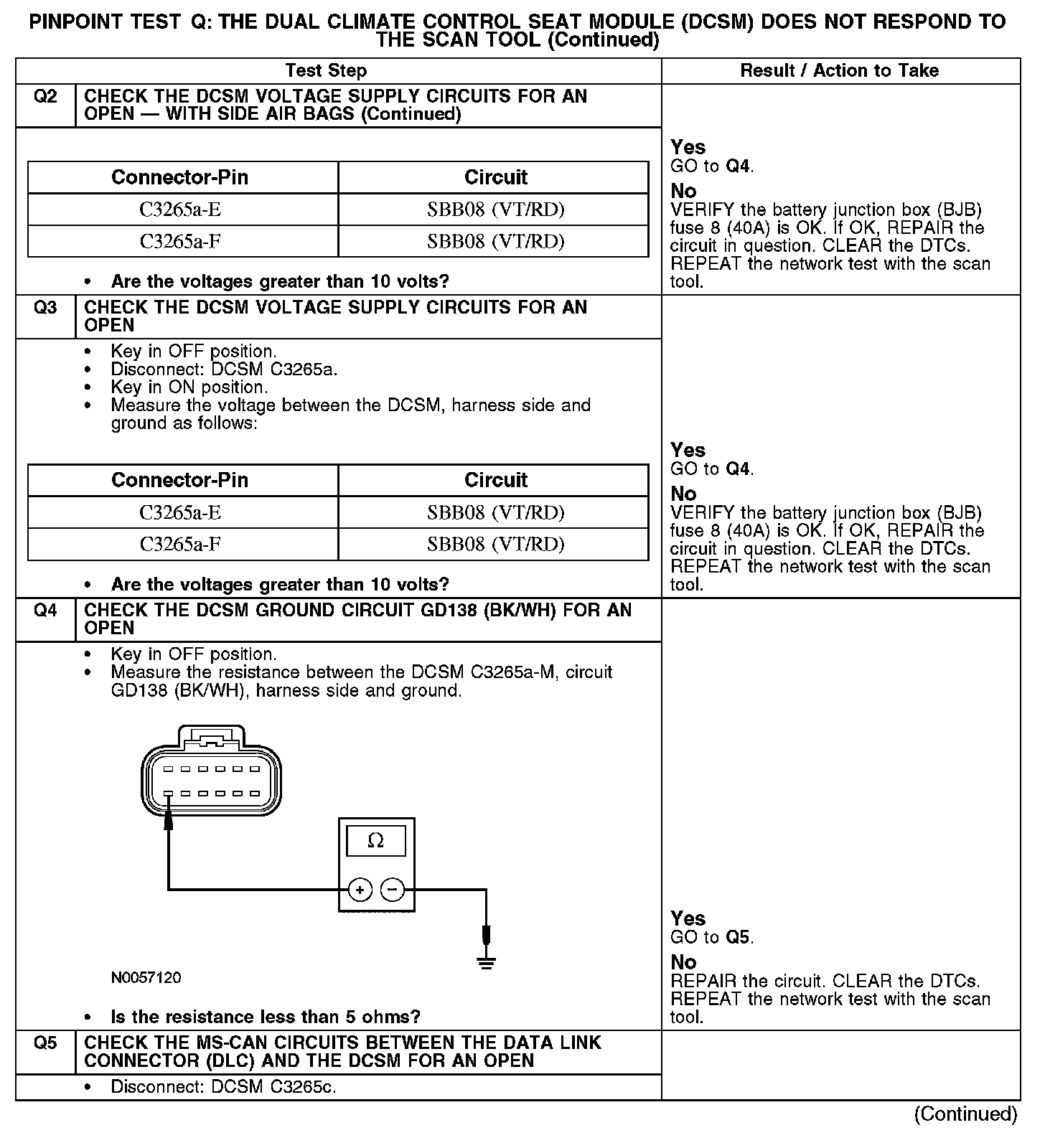 PINPOINT TEST Q: THE DUAL CLIMATE CONTROL SEAT MODULE (DCSM) DOES NOT RESPOND TO THE SCAN TOOLNormal Operation