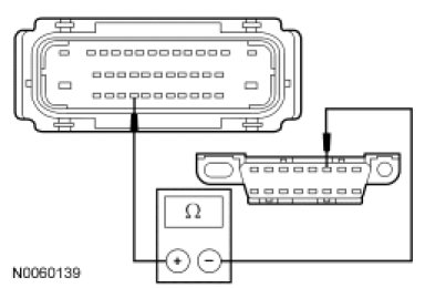 - Measure the resistance between the ABS module C135-5, circuit VDB04 (WH/BU), harness side and the DLC C251-6, circuit VDB04 (WH/BU), harness side.
