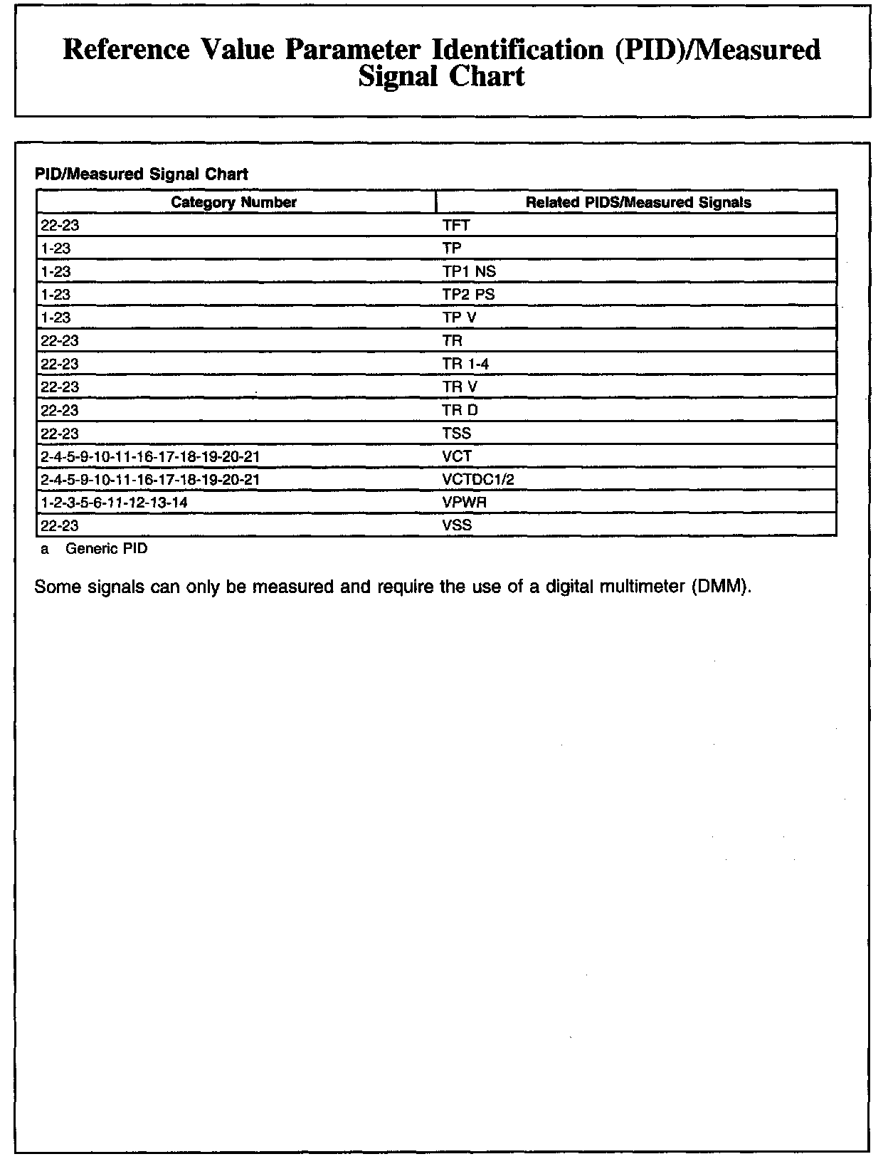 Reference Value Parameter Identification (PID)/Measured Signal Chart