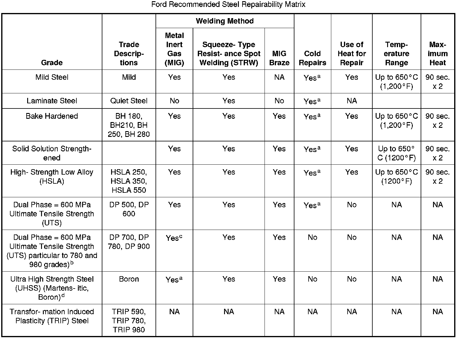 b Dual phase steels DP 700, DP 780 and DP 980 must be replaced at factory joints, no sectioning unless approved procedure in diagnostic/repair information
