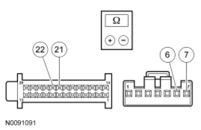 - Measure the low-side resistance between HVAC module - EMTC C2357A-10, circuit RH111 (GY/BU), harness side and HVAC module - EMTC C2357A-7, circuit VH439 (GY/VT), harness side.